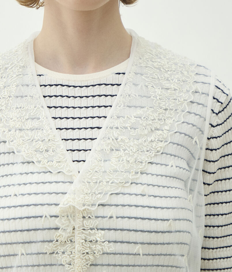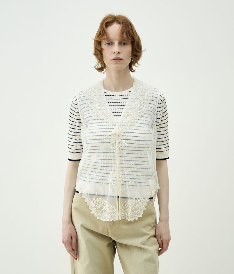 ビンテージのハンド刺繍のレースから着想を得て、クラシックなビンテージの魅力を現代のスタイルに合わせて部分的に改良したブラウスシリーズ。