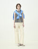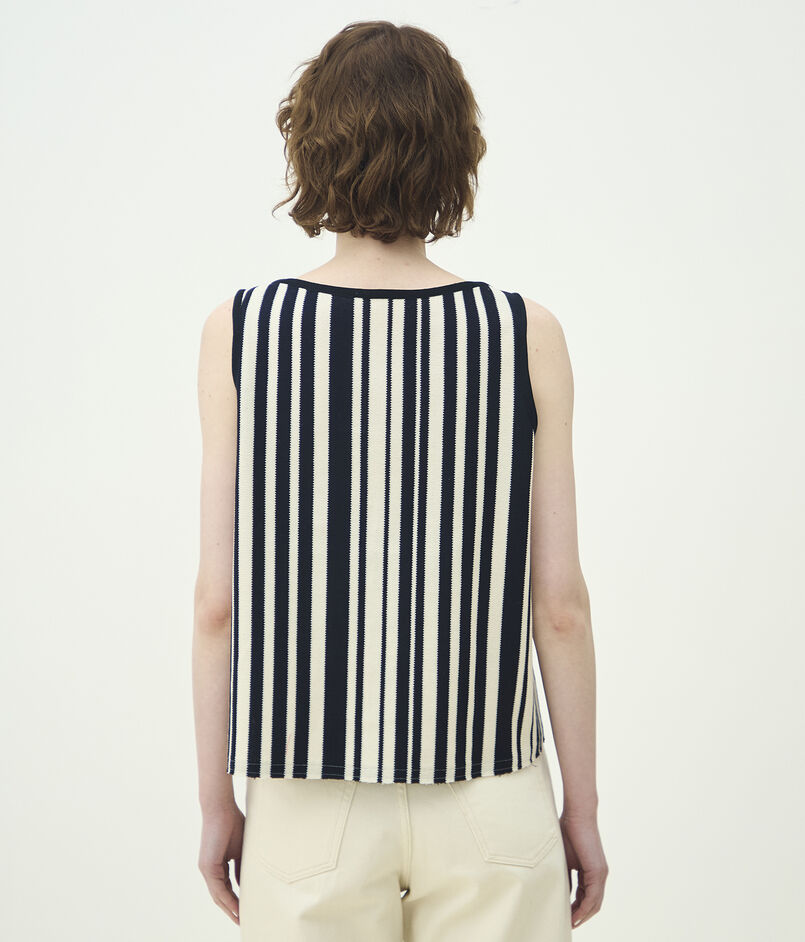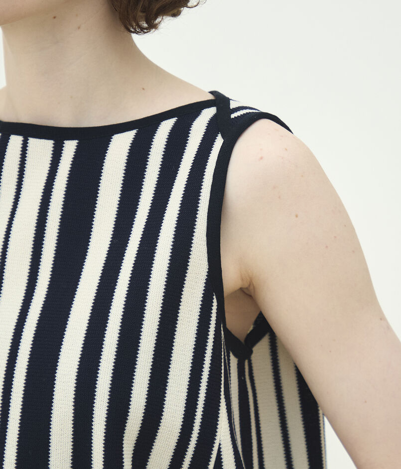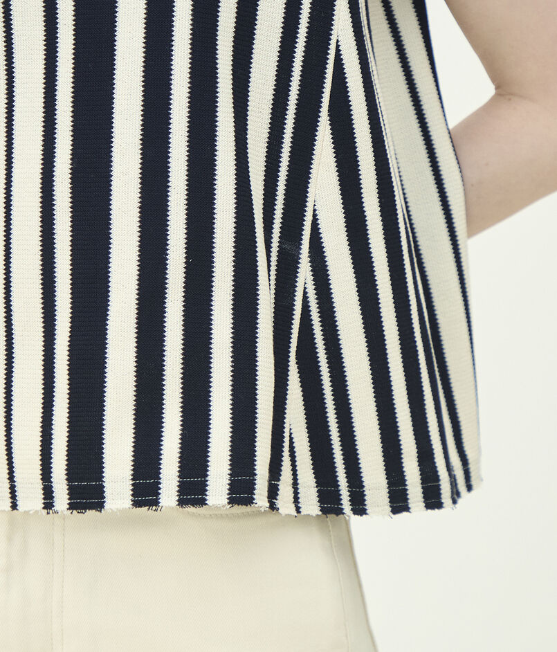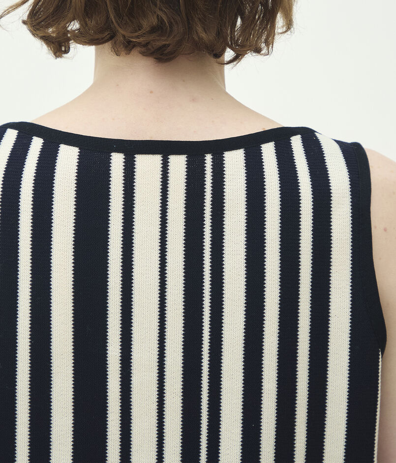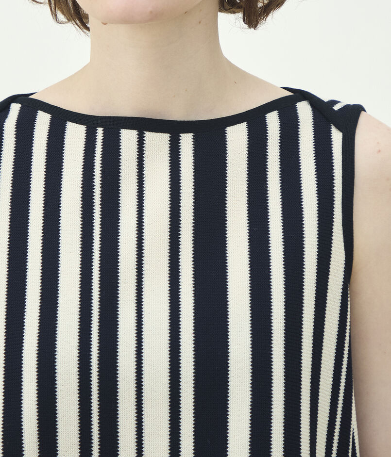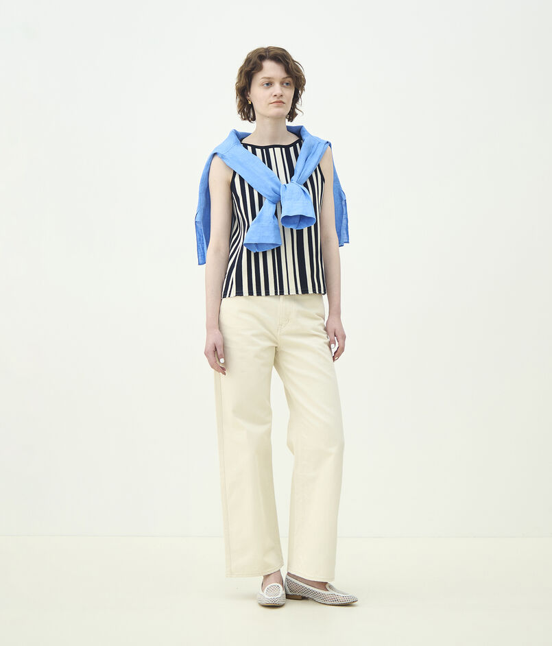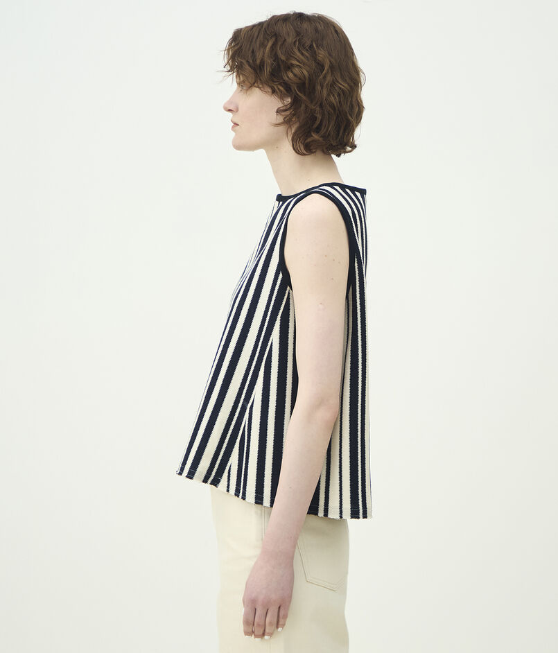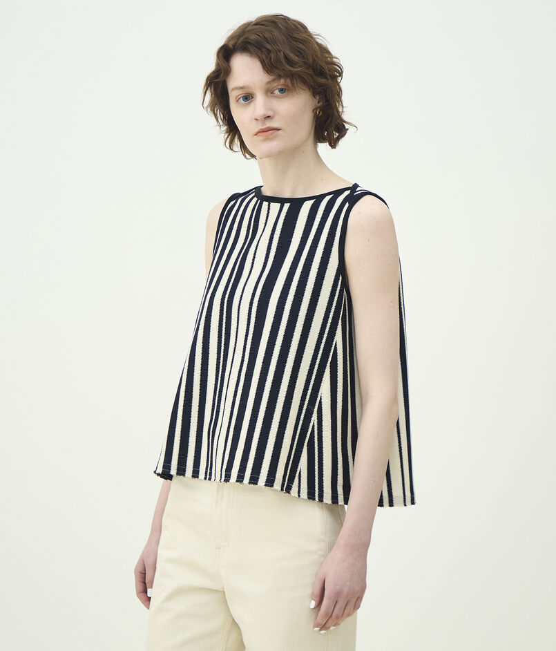 ランダムストライプのタテ編みラッセル素材を使用したシリーズ。