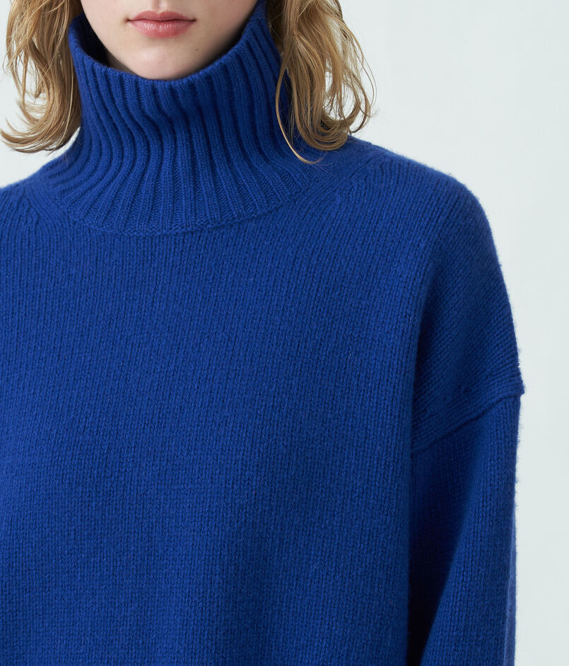 タートルネックプルオーバーは適度にゆとりを持たせたボディにドロップショルダーのデザインで抜け感たっぷりの一着。