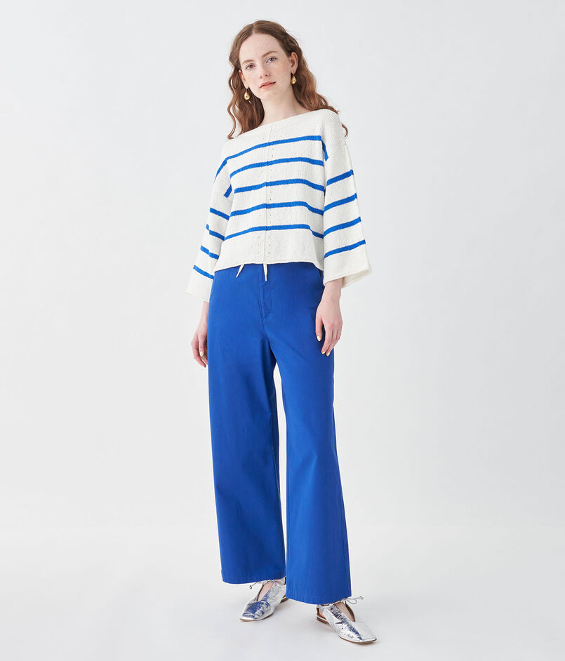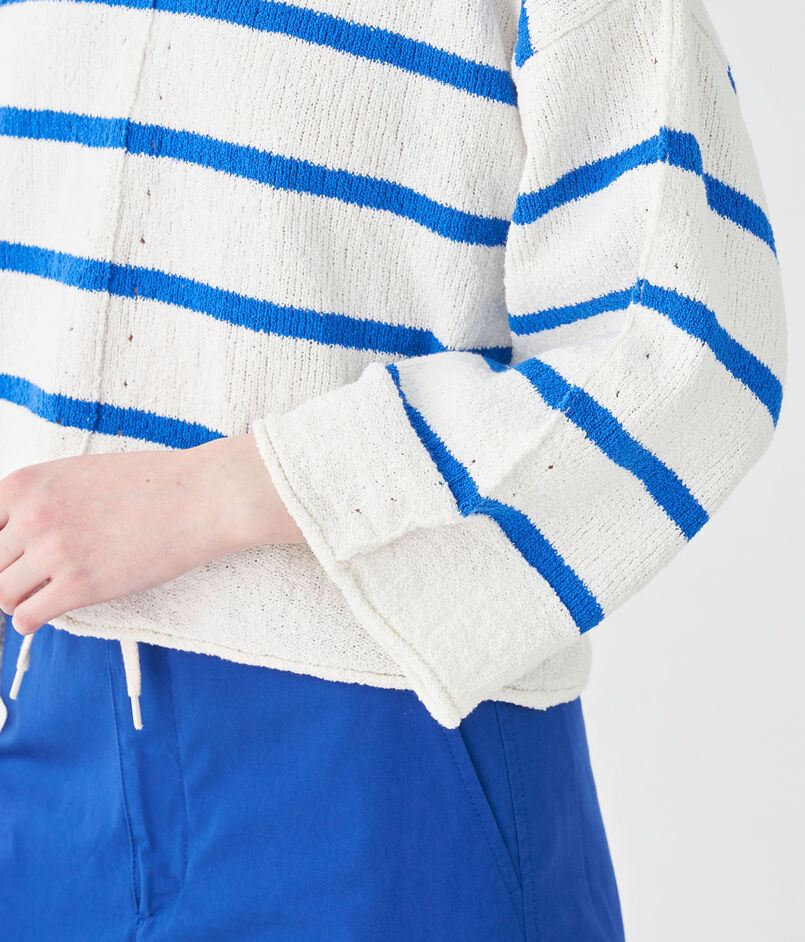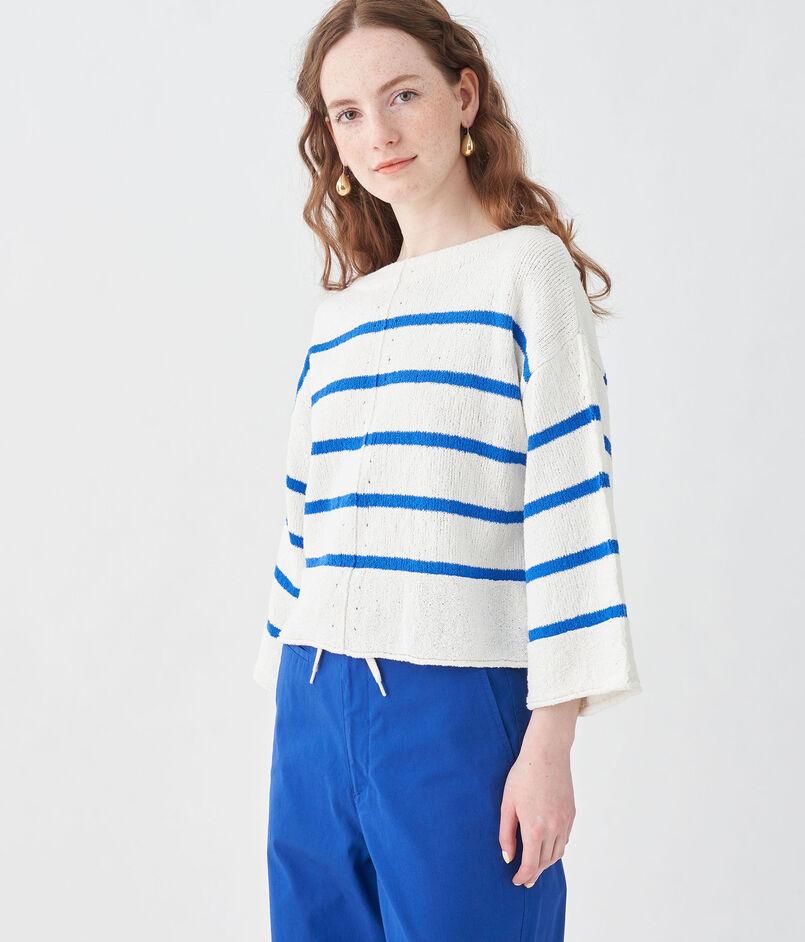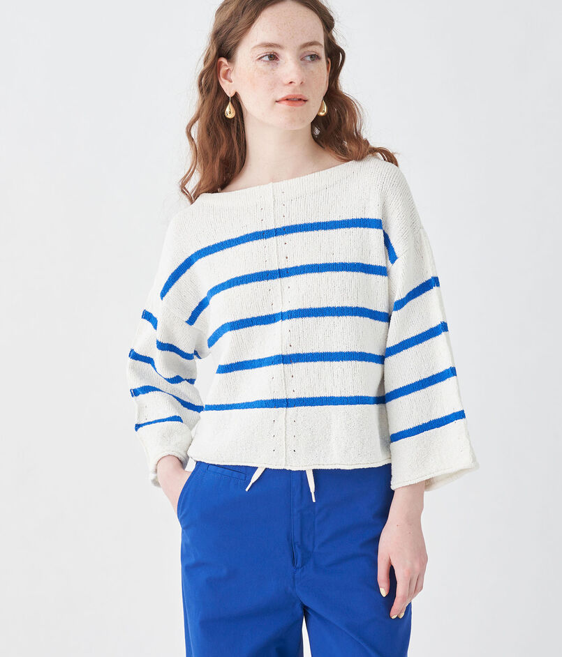 プルオーバーはゆったりとしたボクシーなシルエットとワイドスリーブ、 ボートネックデザインがリラックスムード漂う一着。