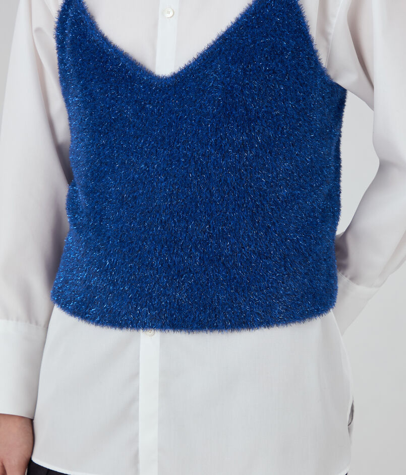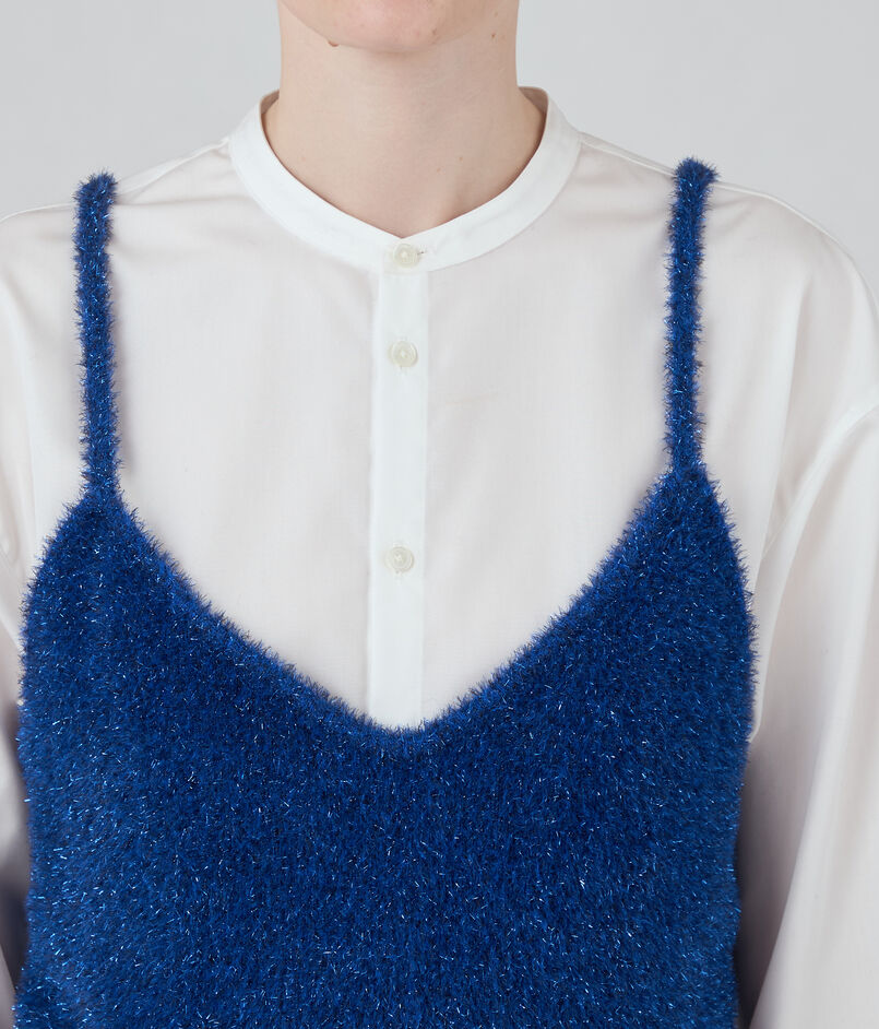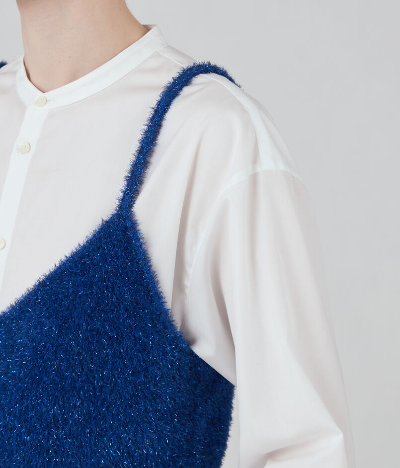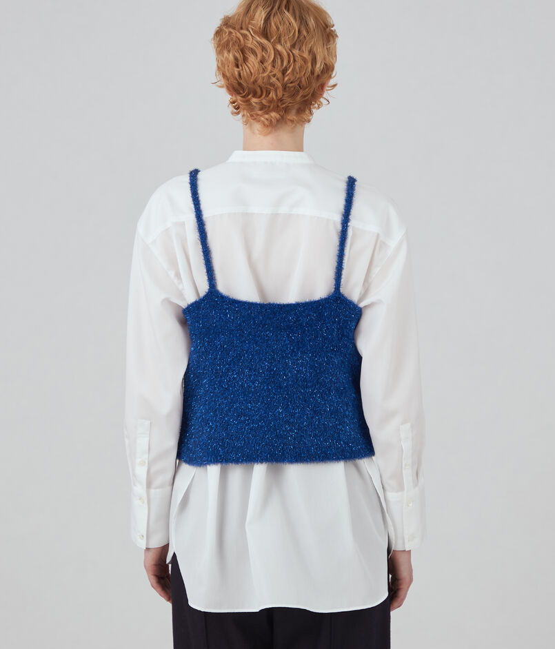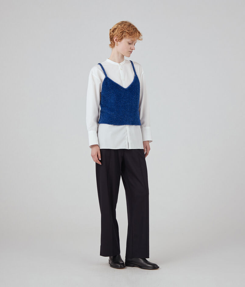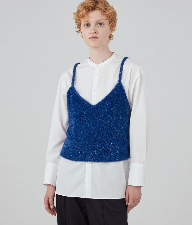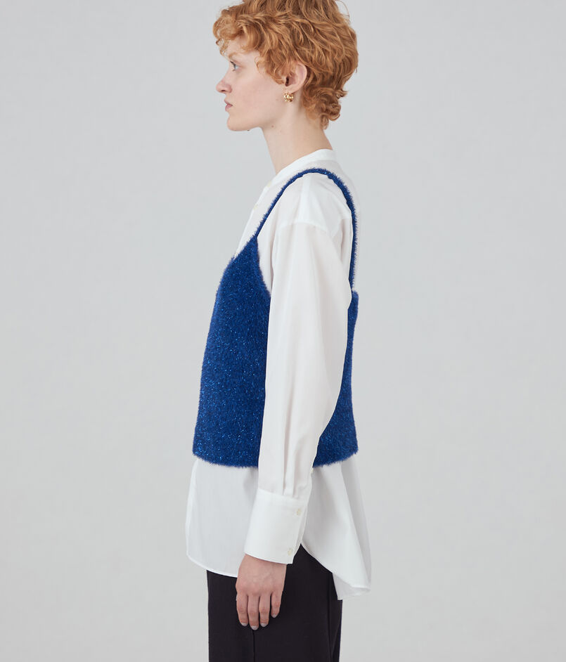 同素材のカーディガン(商品番号:12-02-44-02409)とアンサンブルで着こなしたり、ビスチェのようにシャツの上にレイヤードするのもおすすめです。