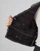 芯を貼ることでハリを出し、さらに端を断ち切りにすることでカジュアルさがありながらもゴージャス感も残した表情が魅力です。
