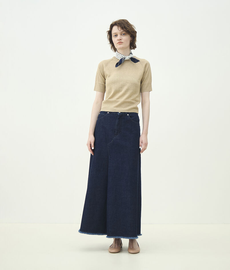 ハイウエストパンツやロングスカートなどのボリュームボトムスとも相性抜群。