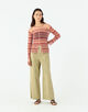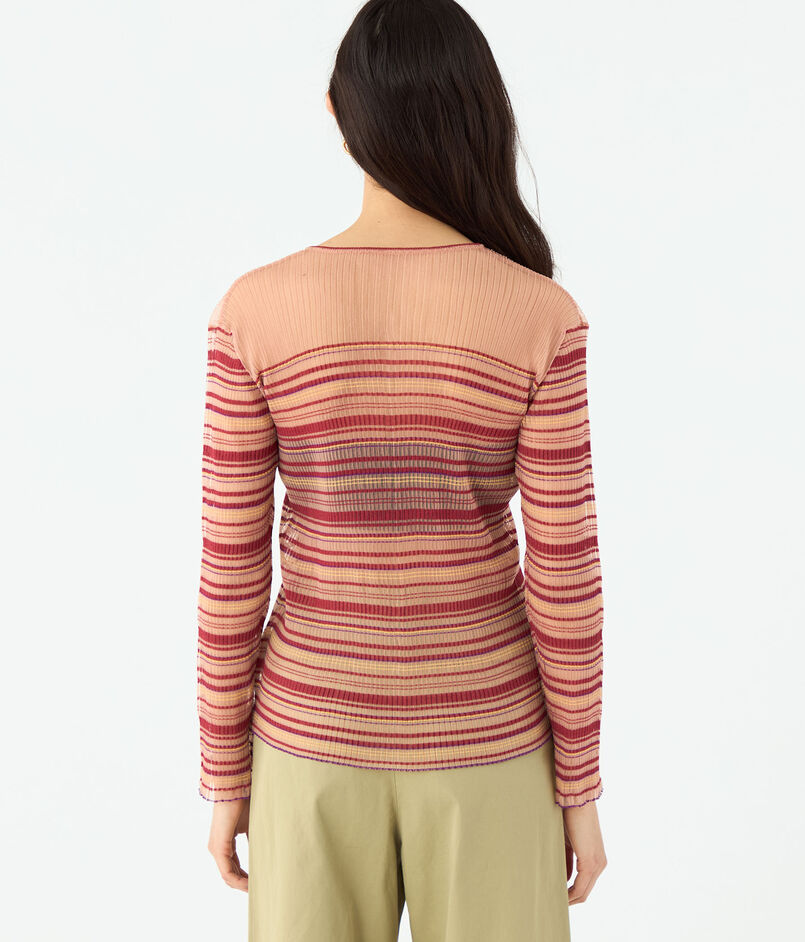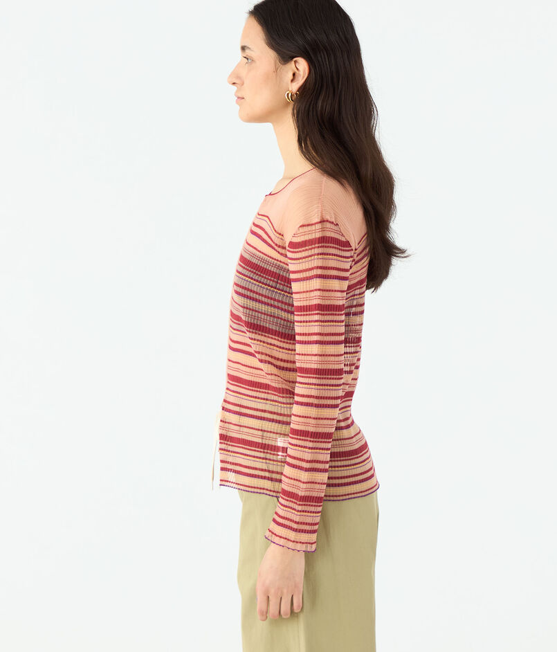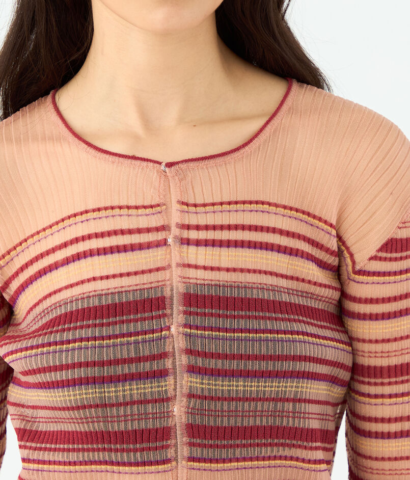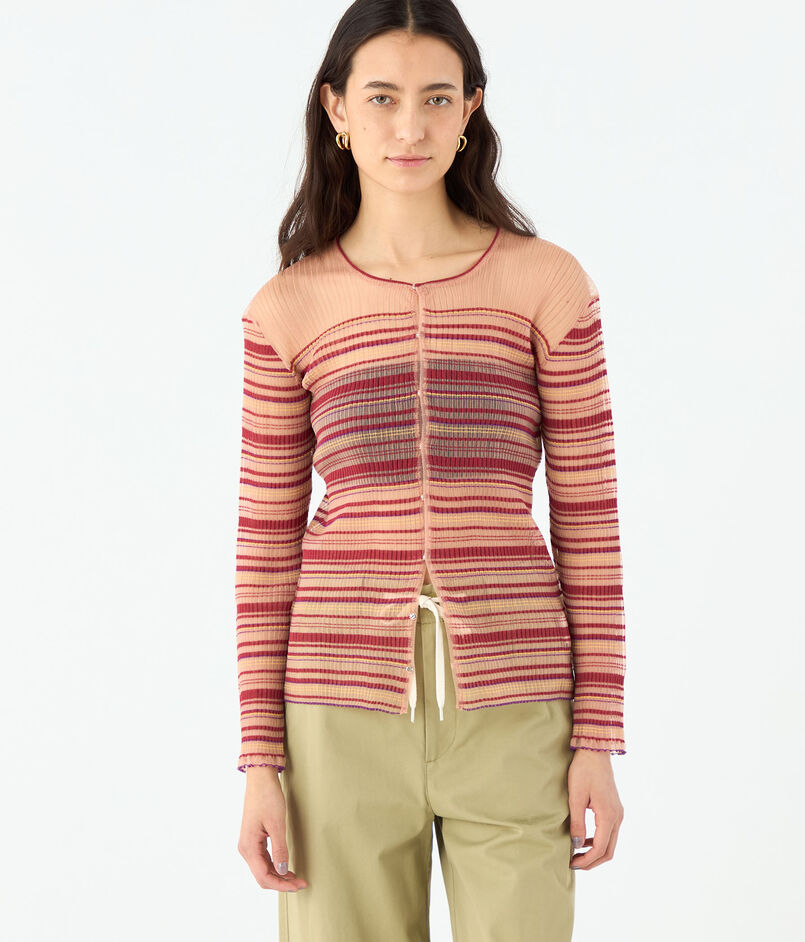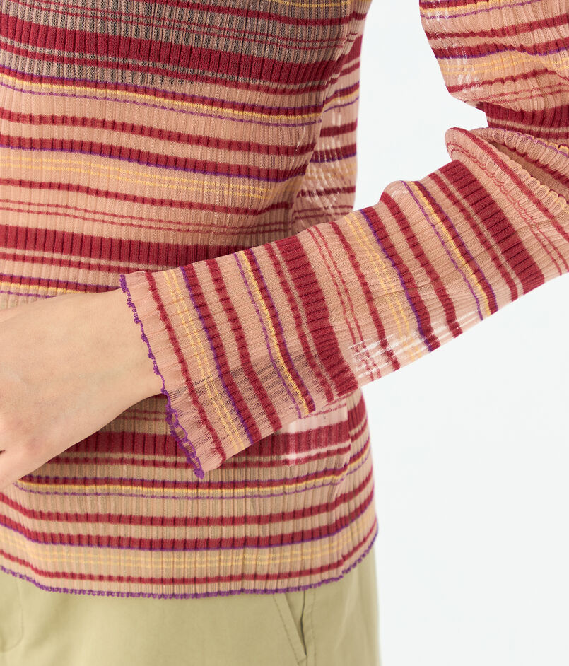 細かなリブ組織にマルチボーダーをのせた、繊細で配色感が楽しいアイテムに仕上がっています。