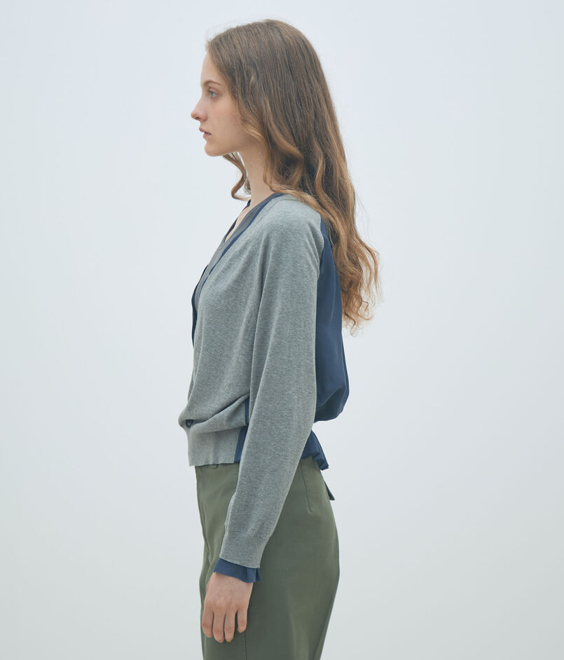 ファブリックコンビ Vネックカーディガン