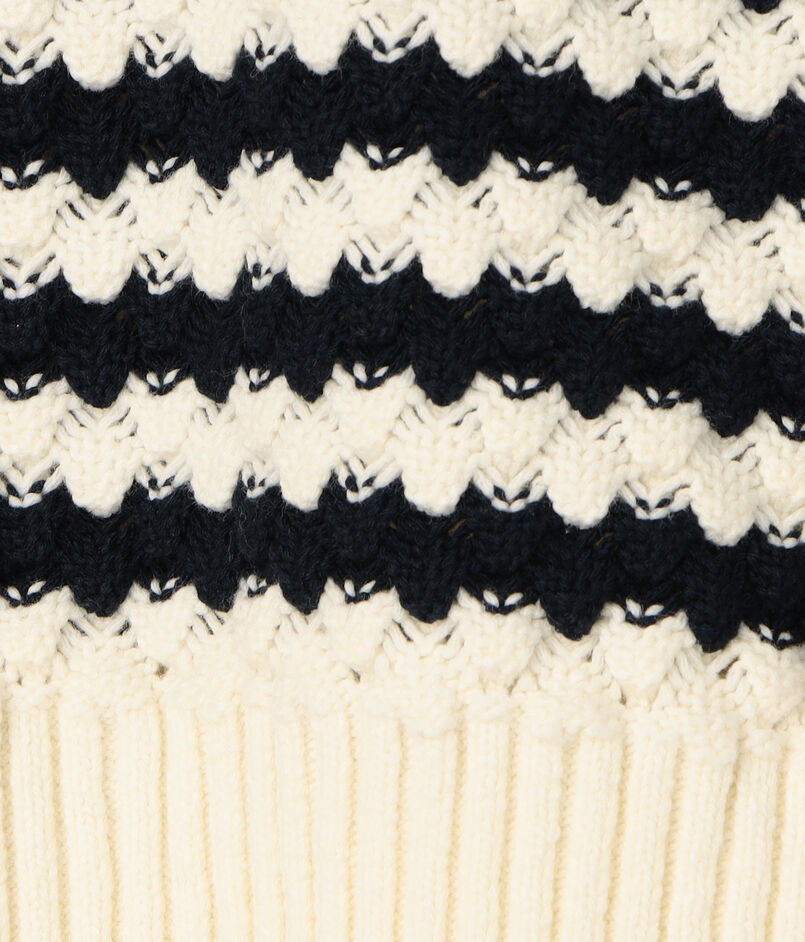 〈MACPHEE〉定番のハイブリッドコットンを、計算された立体的で凹凸のあるドット柄に編み上げたニットシリーズ。