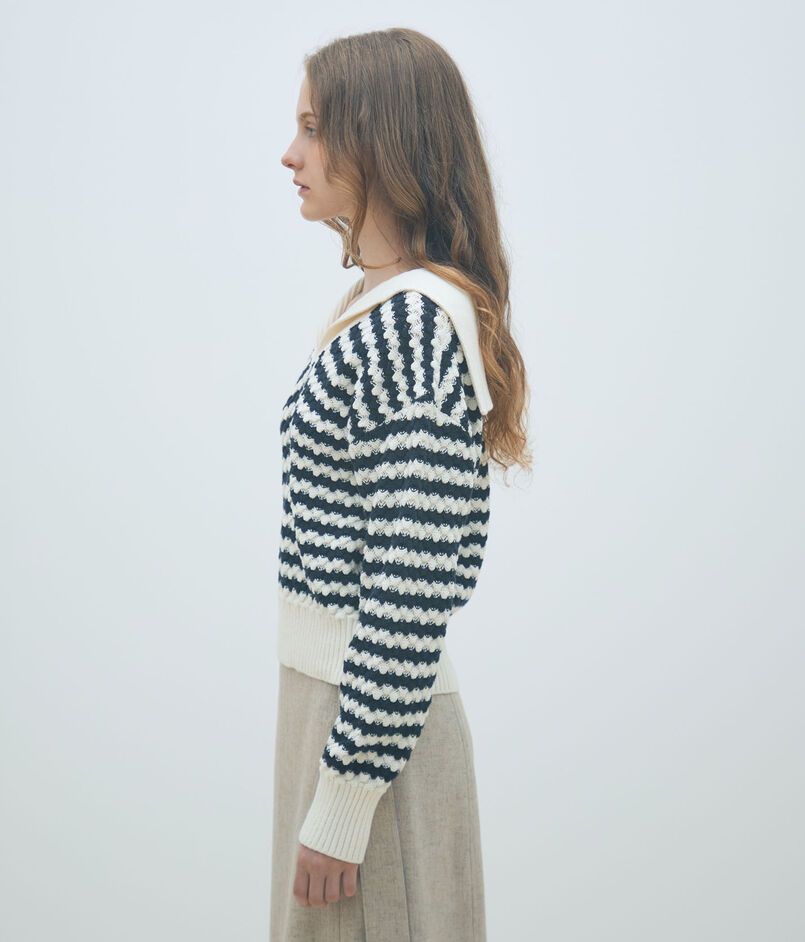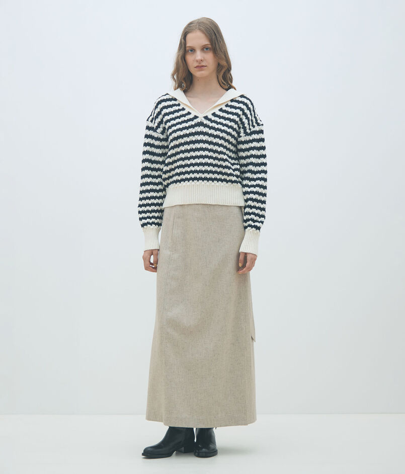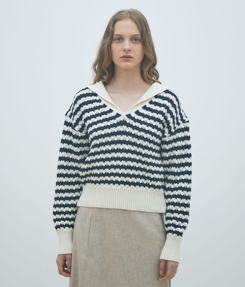 ほど良い開き具合のセーラーカラープルオーバーは、ゆったりとしたオーバーサイズで抜け感のあるバランスに仕上げた一枚。