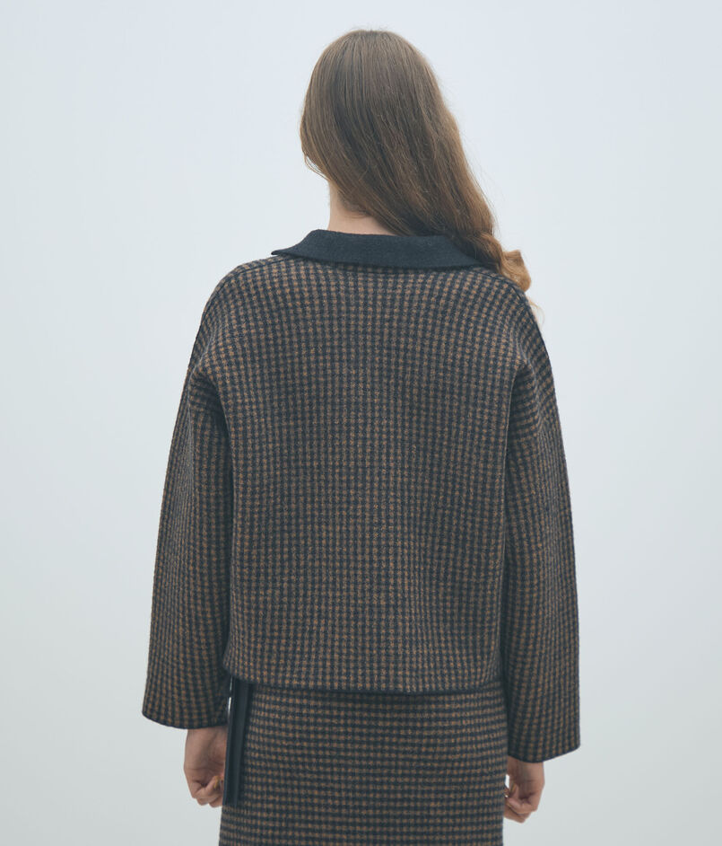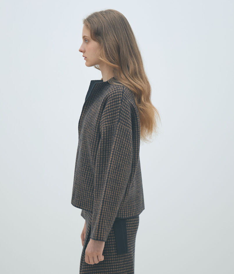 ギンガムチェックをダブル組織で編むことで無地と柄、異なる二つの表情をお楽しみいただけます。