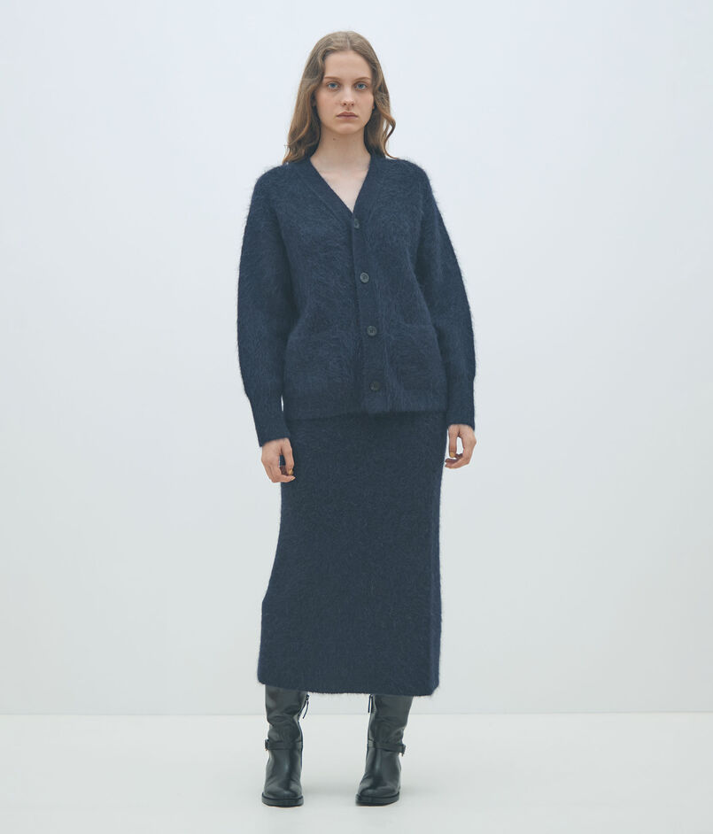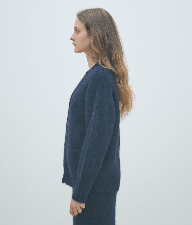 柔らかさにこだわったアルパカ混の糸で編み上げたニットカーディガン。