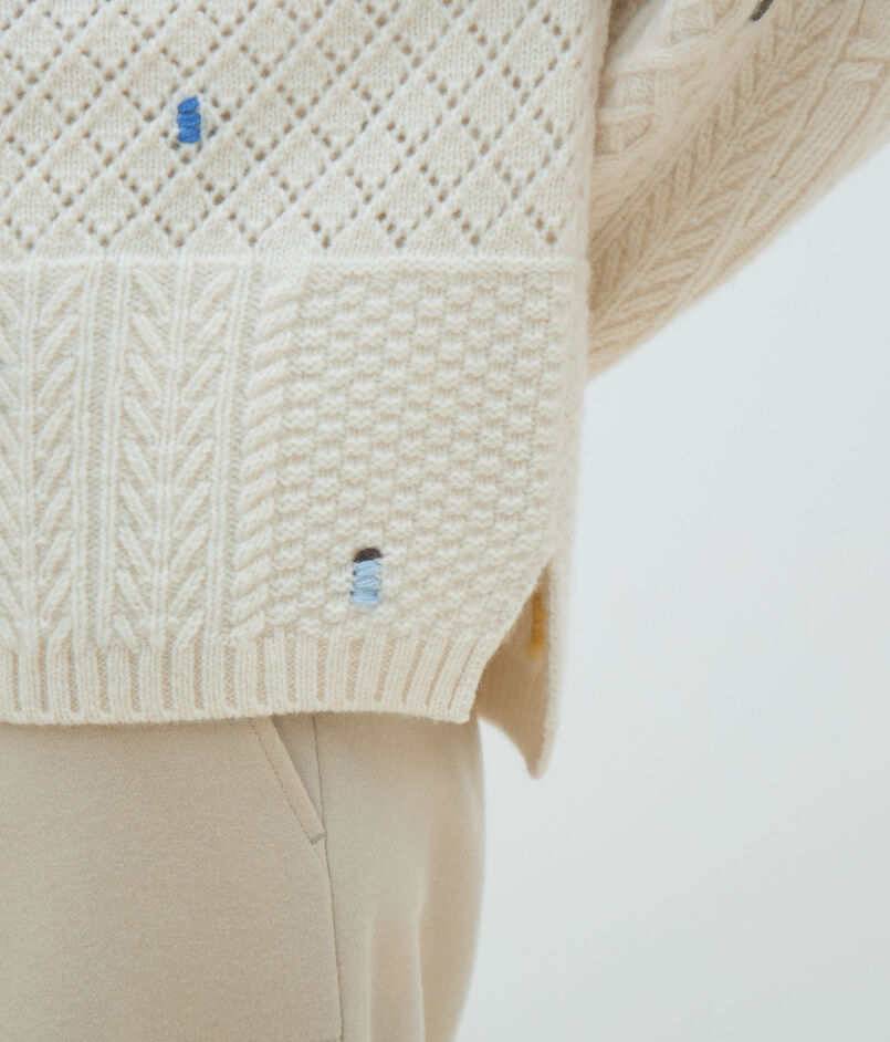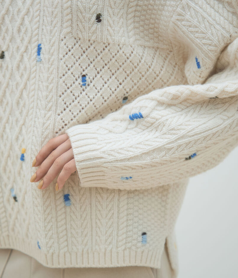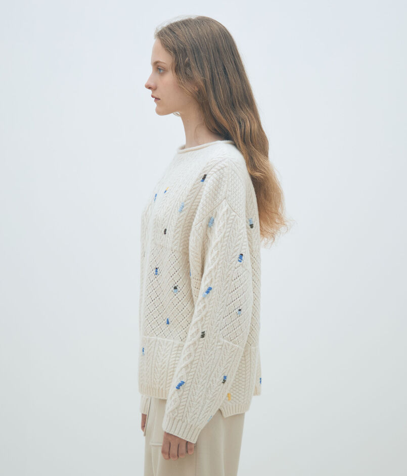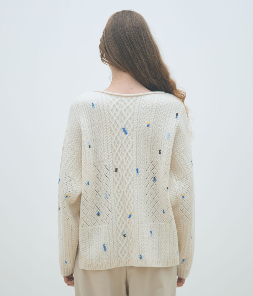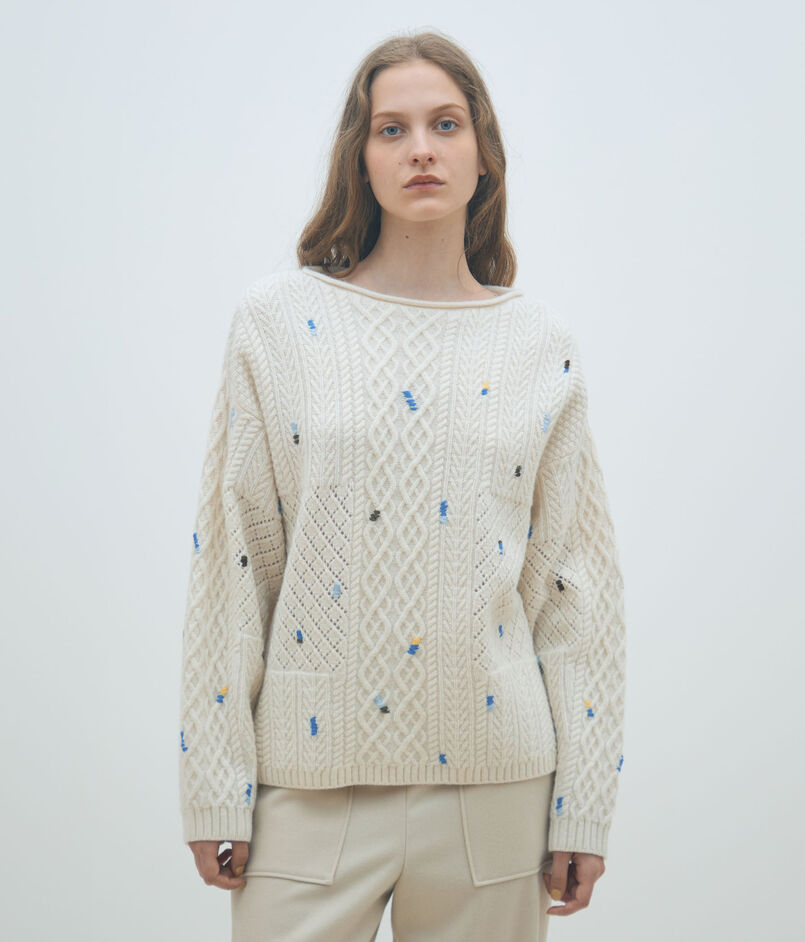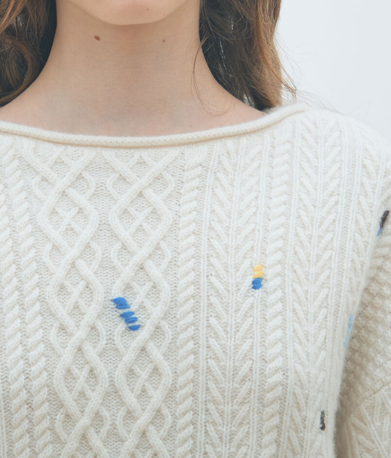 ケーブルエンブロイダリー ボートネックプルオーバー