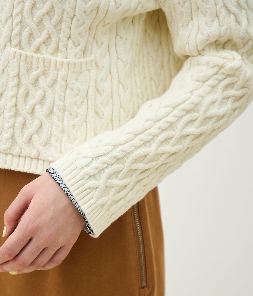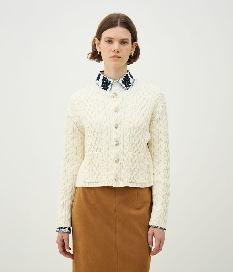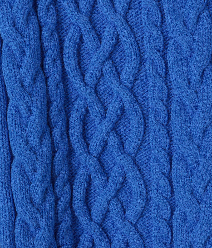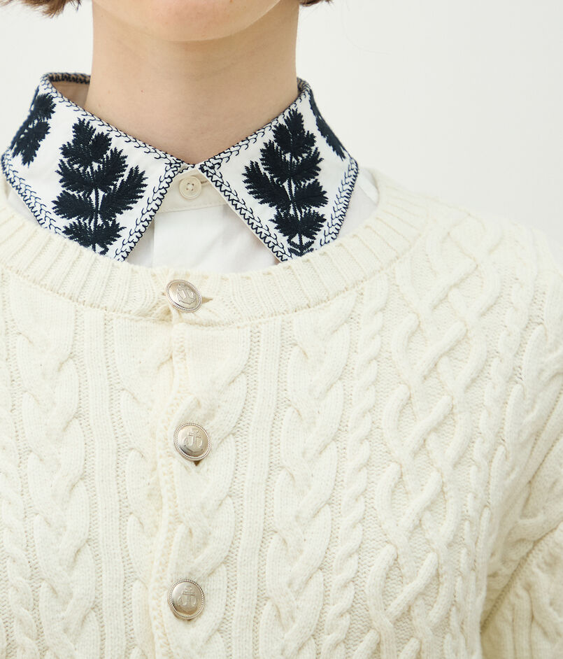 軽さとハリ感のあるオリジナル糸を使用し、計算された細やかなケーブル柄に編み上げた〈MACPHEE〉定番のニットシリーズ。