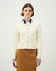 カーディガンはコンパクトなバランスながら今季はサイズ感にほど良くゆとりを出し、より着やすくアップデートした一枚。