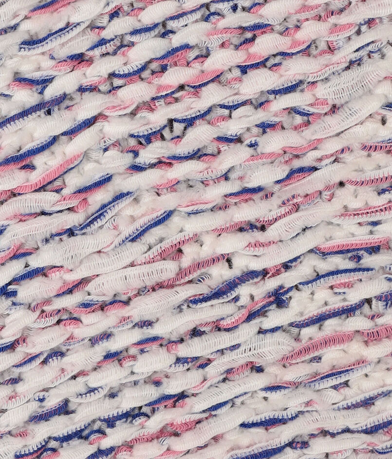 柔らかでくたっとしやすいテープヤーンに熱で固まる性質を持つ糸を引き揃えることでハリのある風合いをプラスしています。