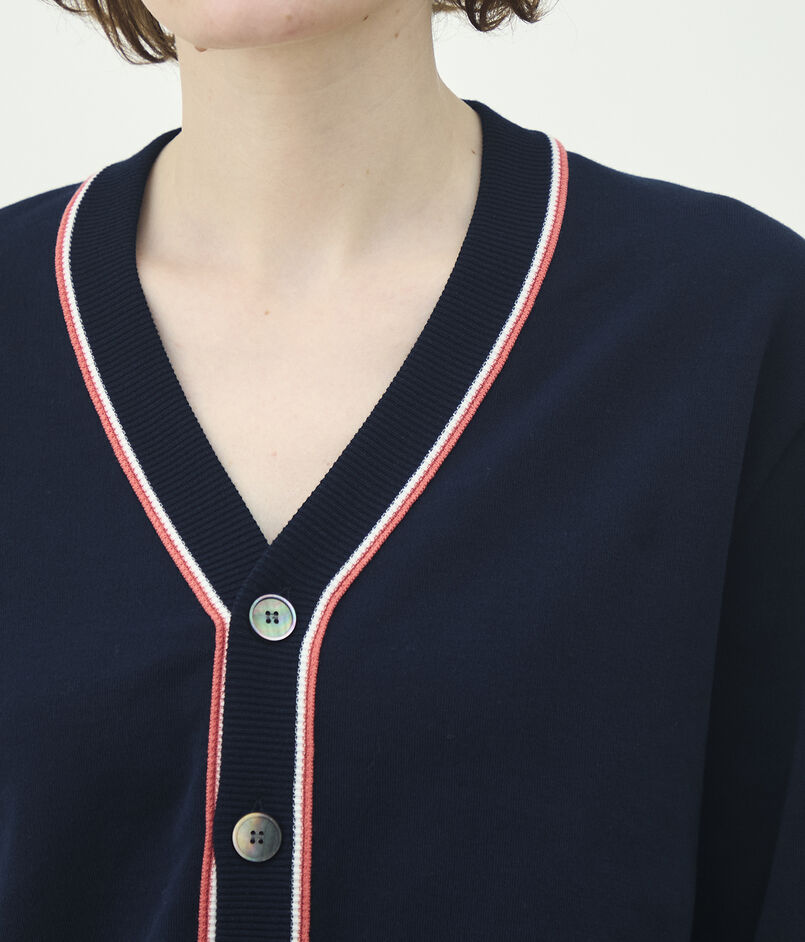 ほど良く開いたVネックデザインがポイントのカーディガン。