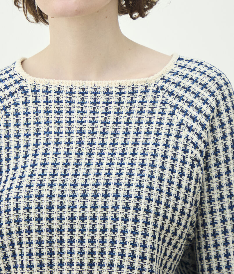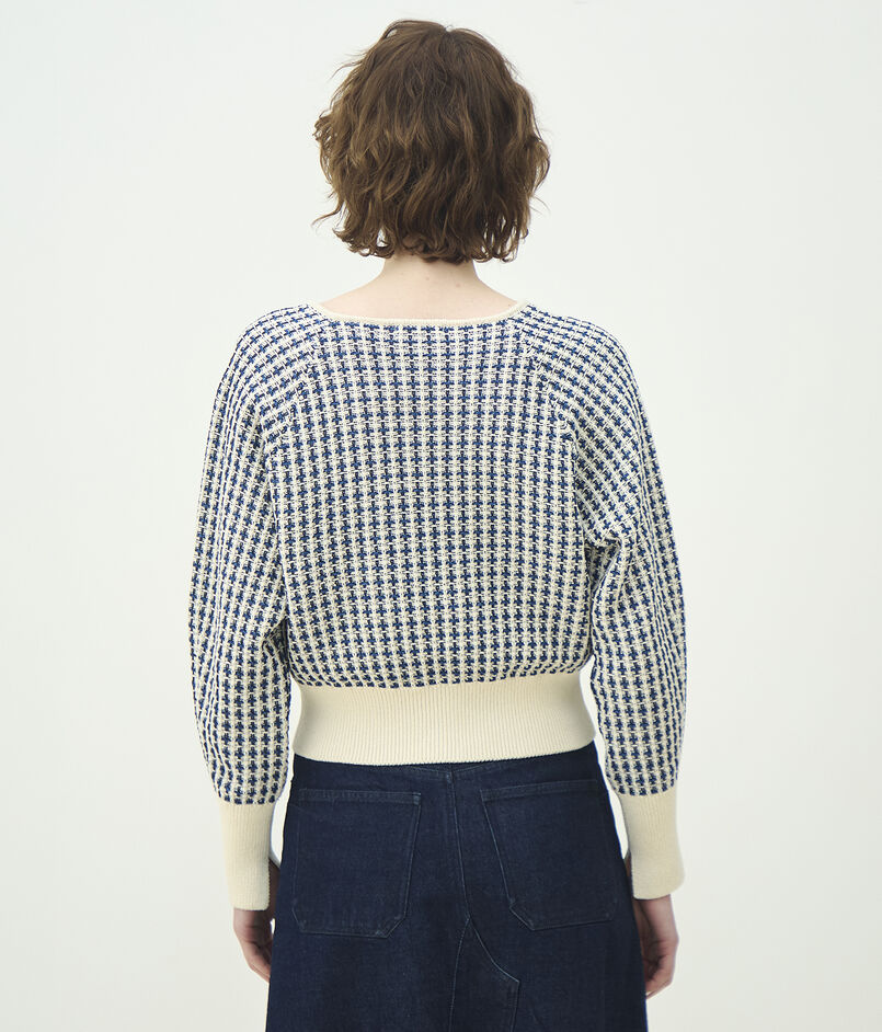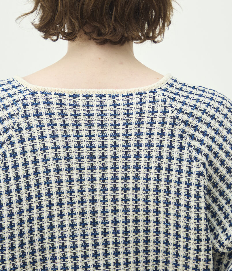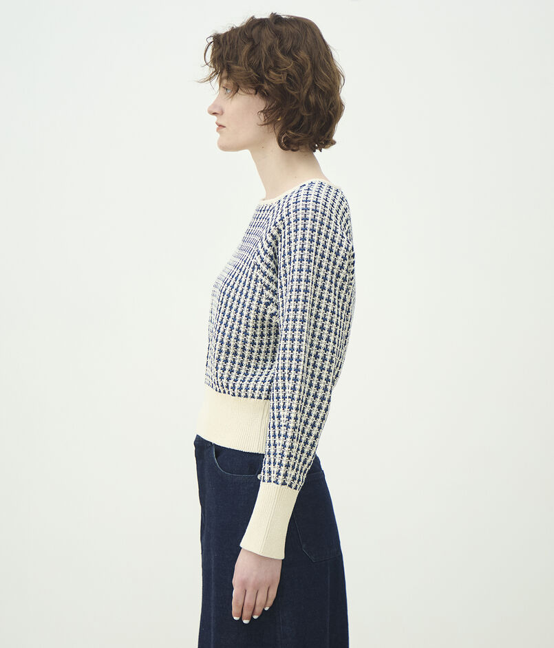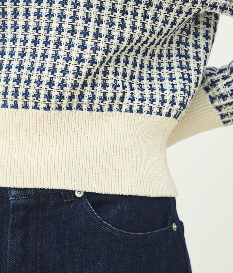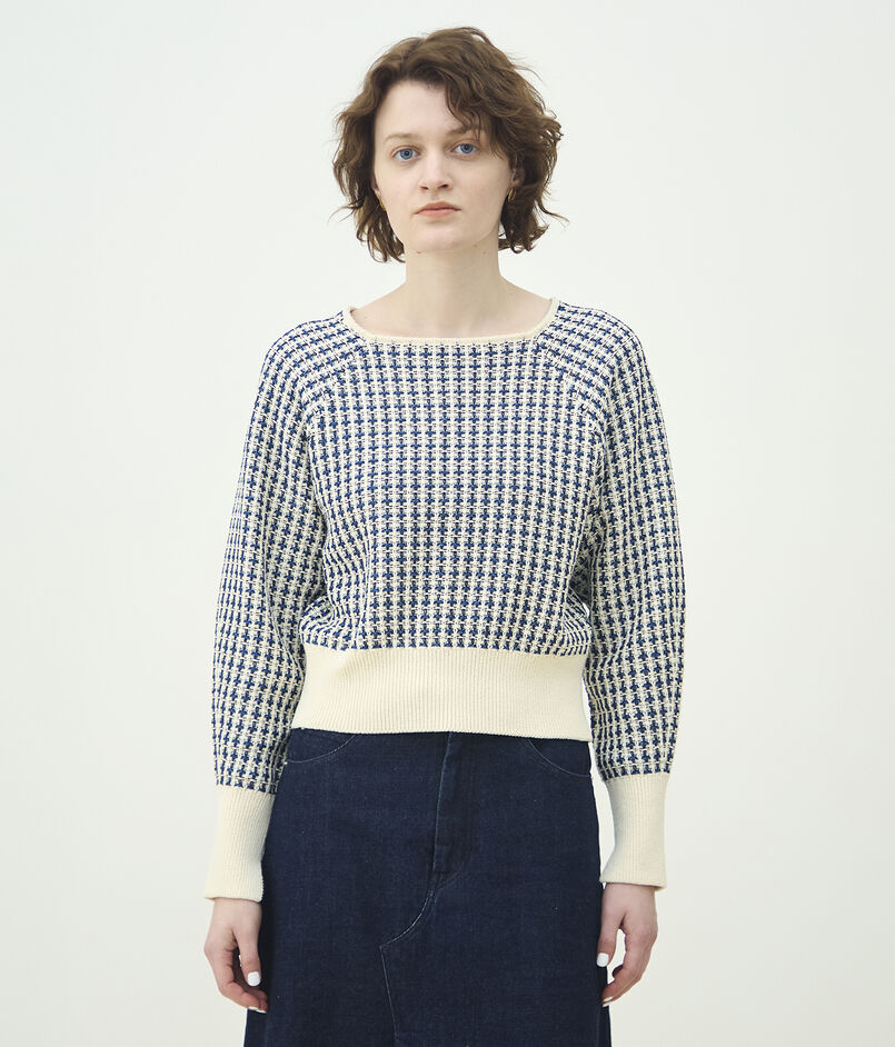 変わり編み組織で凹凸感を出したニットプルオーバー。