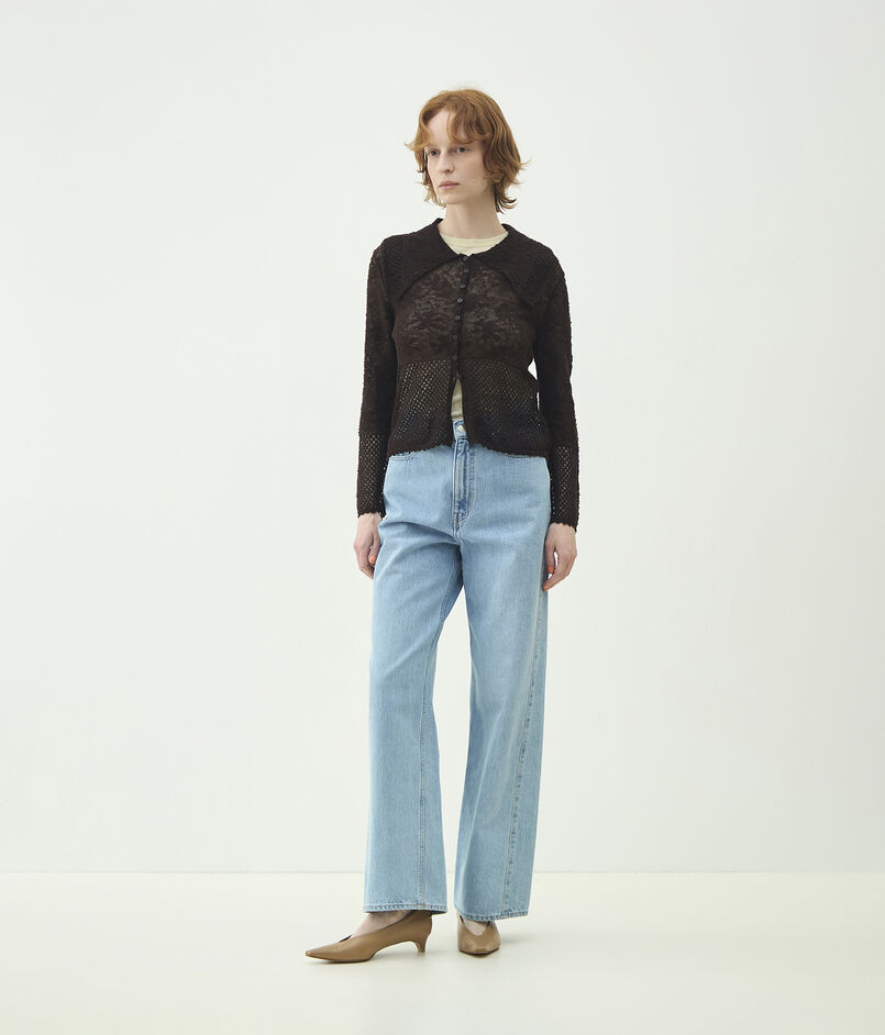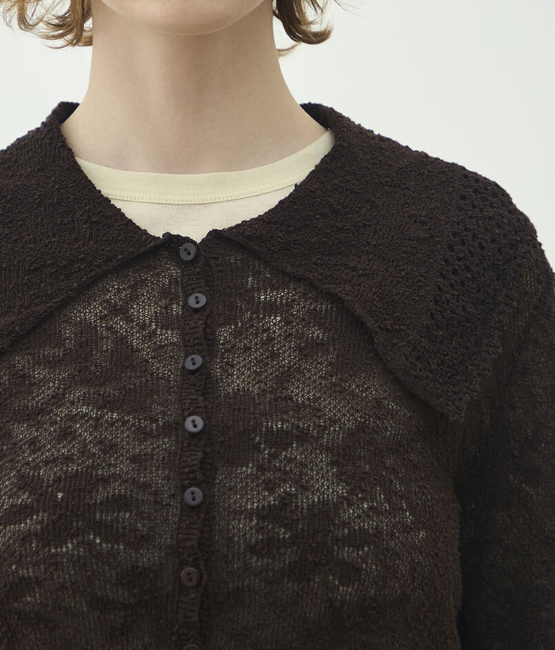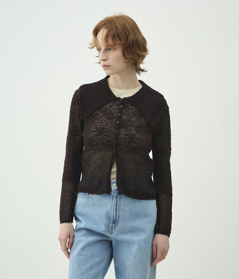 レーシーニット ビックカラーカーディガン