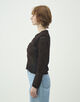 フェミニンな印象ながらメッシュ柄と組み合わせ、カジュアルな素材を使用することで着回しやすい表情に仕上げています。