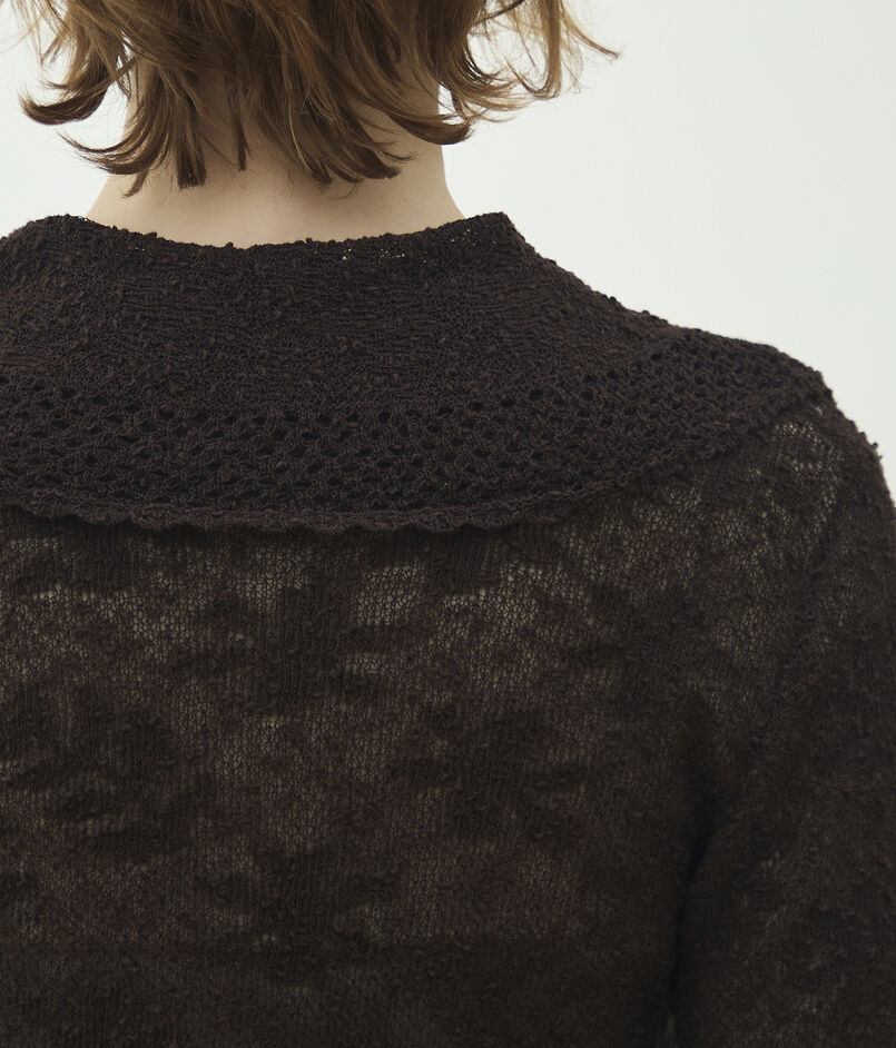 コットンのノットヤーンをレース柄にジャカードで編み上げたニットシリーズ。