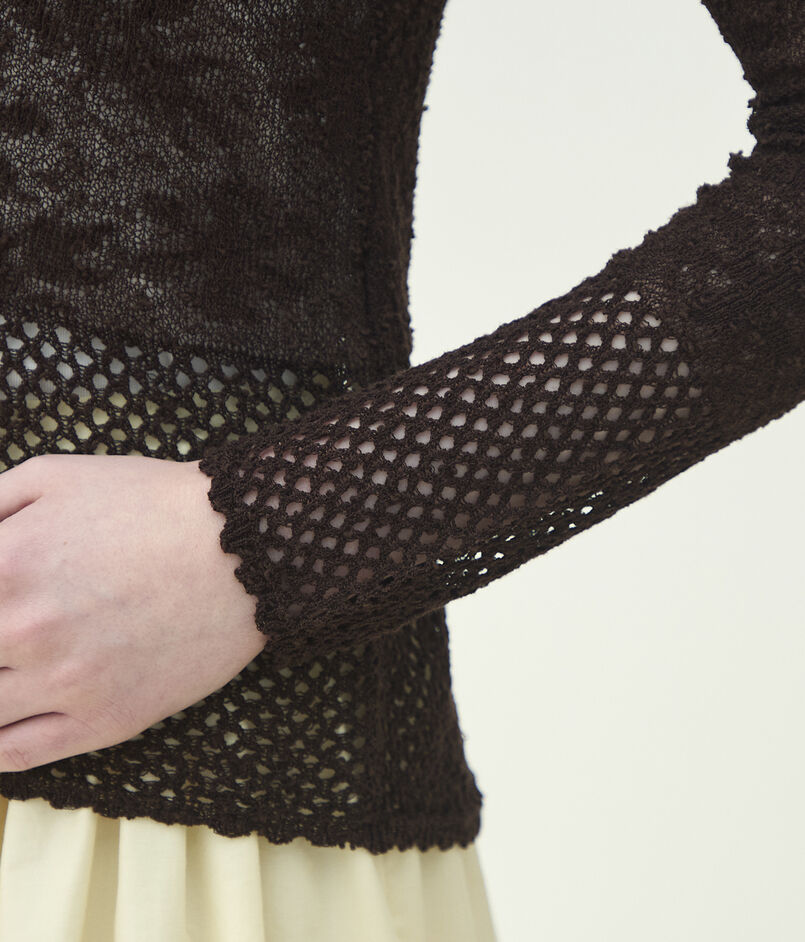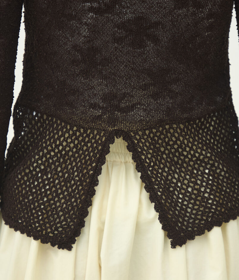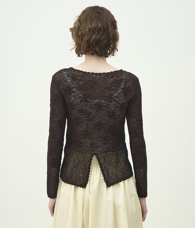 コットンのノットヤーンをレース柄にジャカードで編み上げたニットシリーズ。