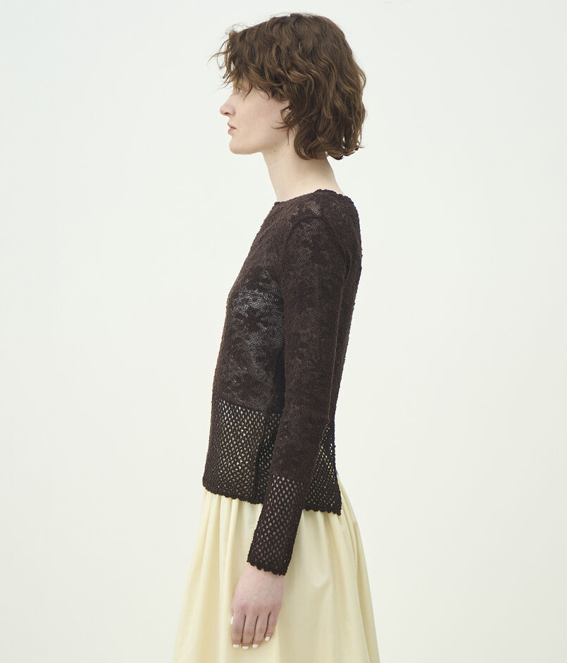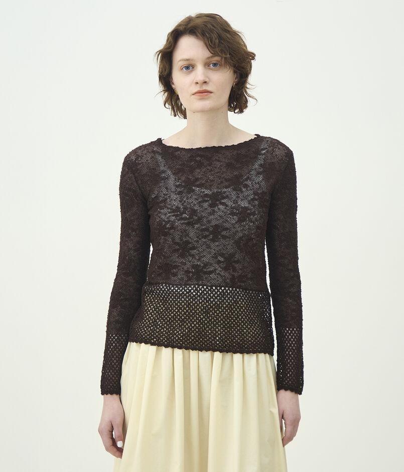 レーシーニット ボートネックプルオーバー