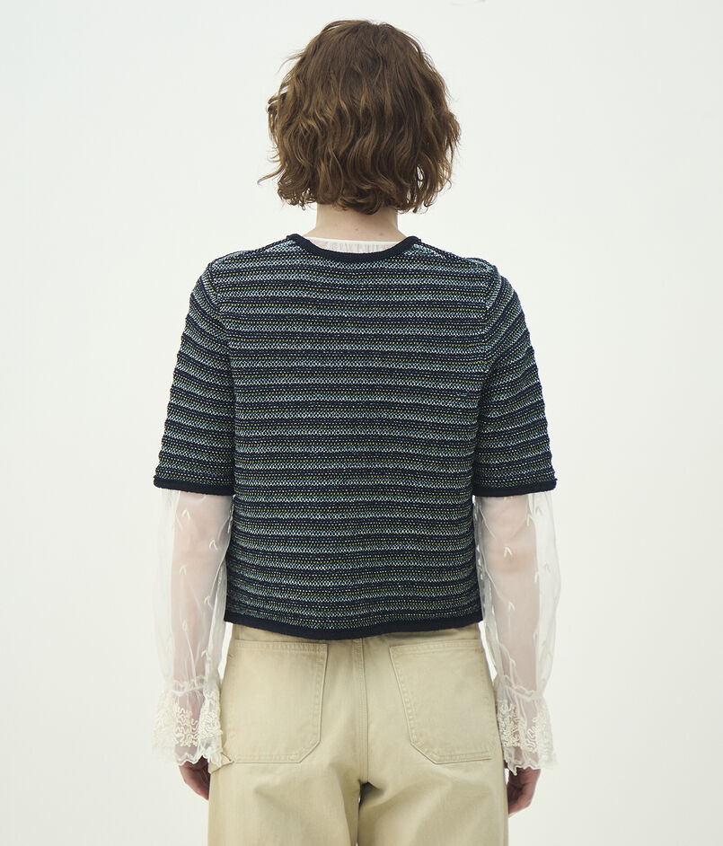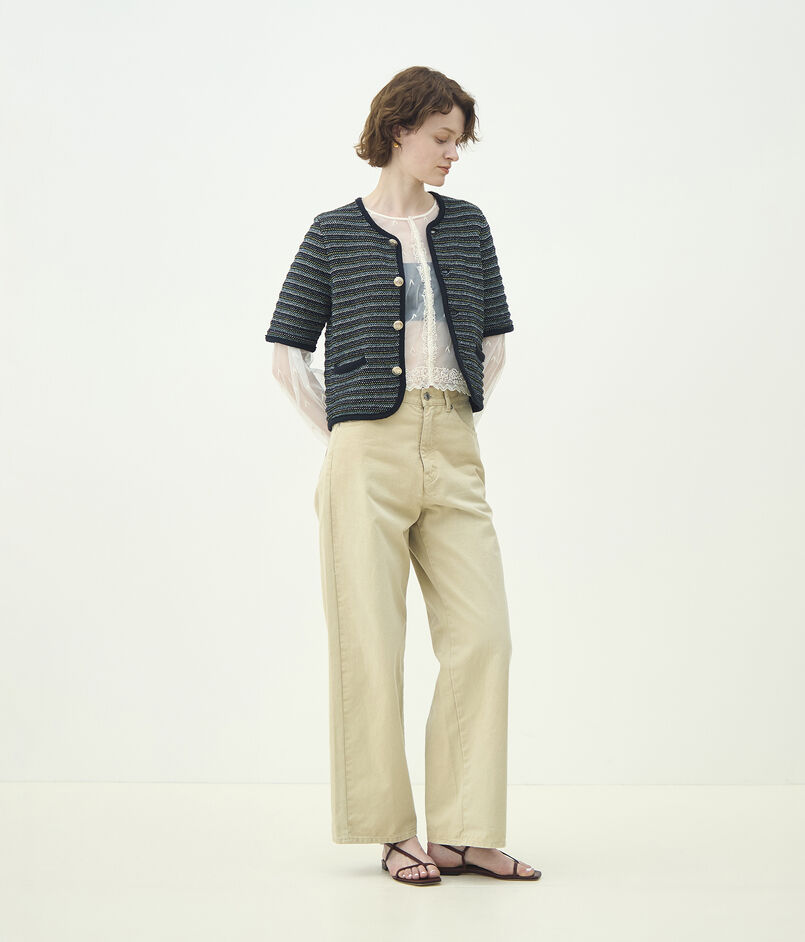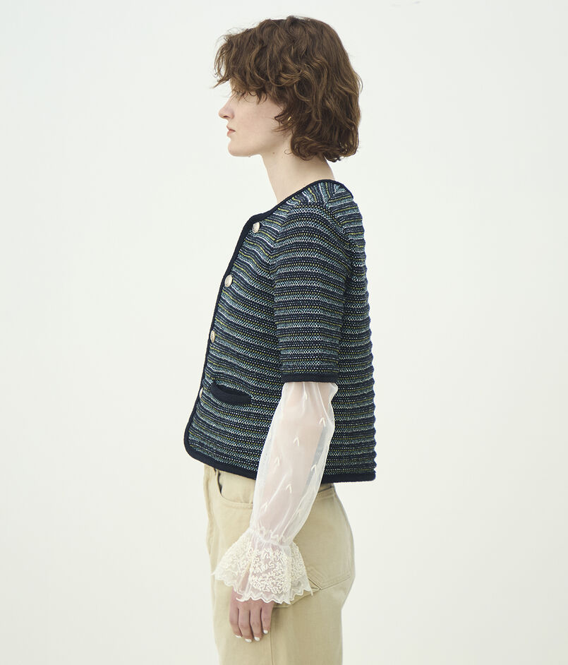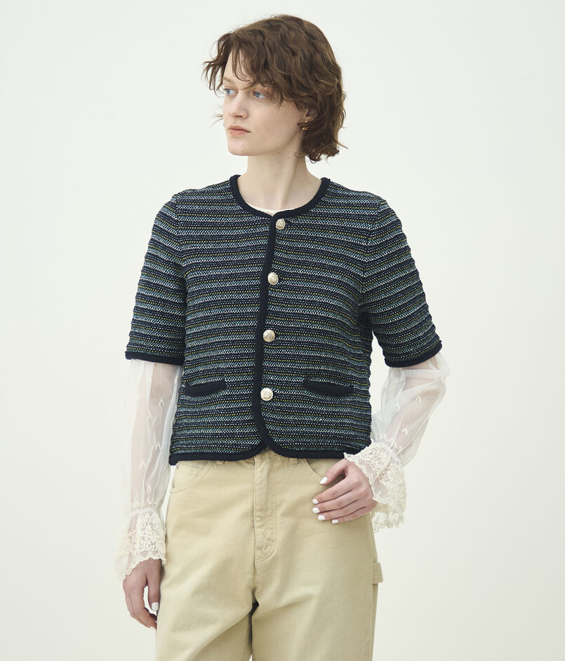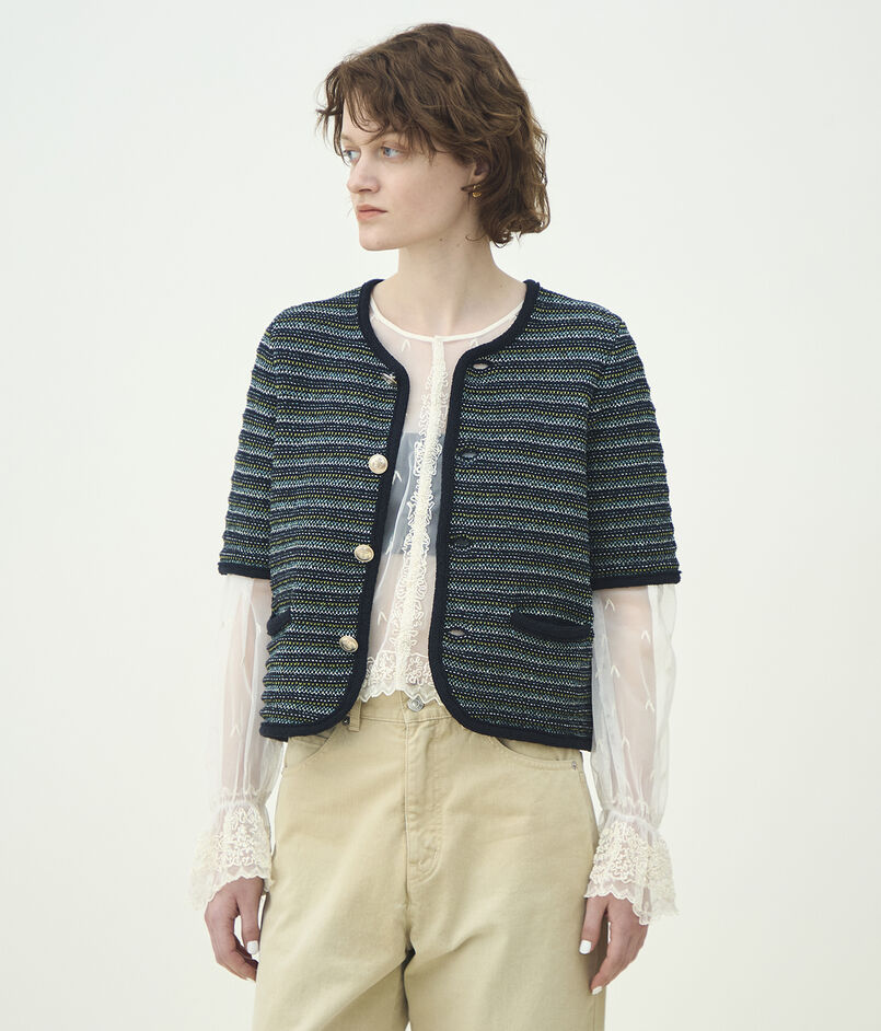 ジャカードボーダー ハーフスリーブジャケット