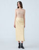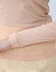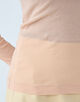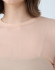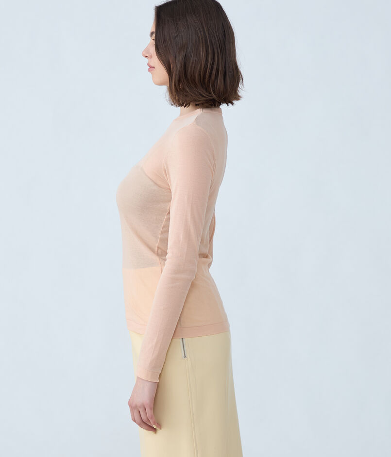 クルーネックプルオーバーはほど良くボディにフィットするシルエットにコンパクトなネックラインでクリーンな女性らしい印象の一着。