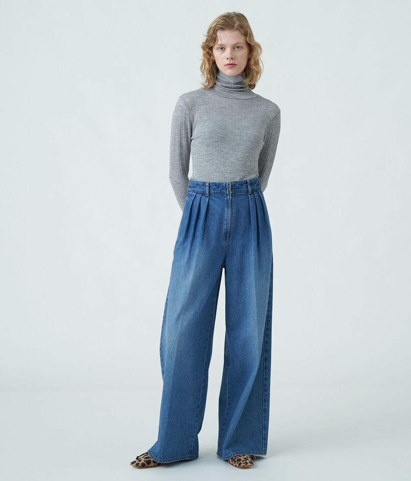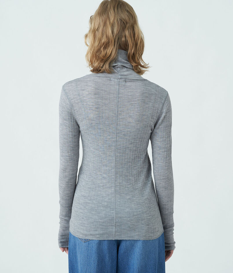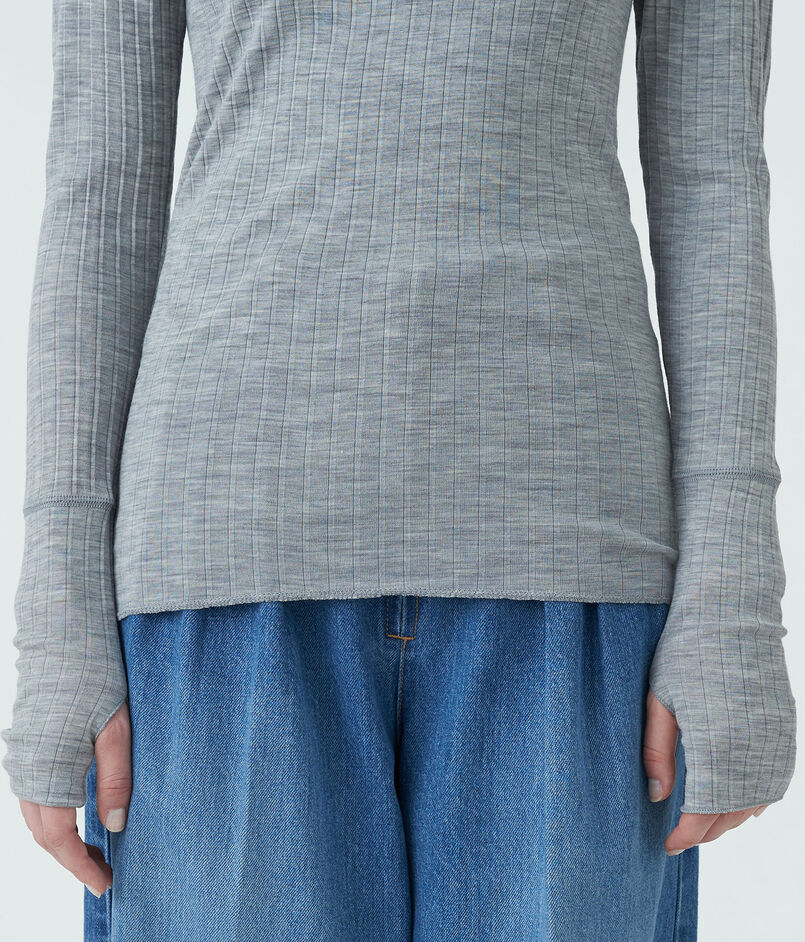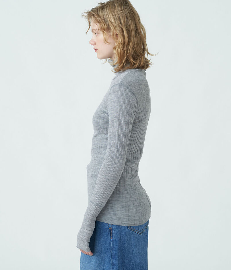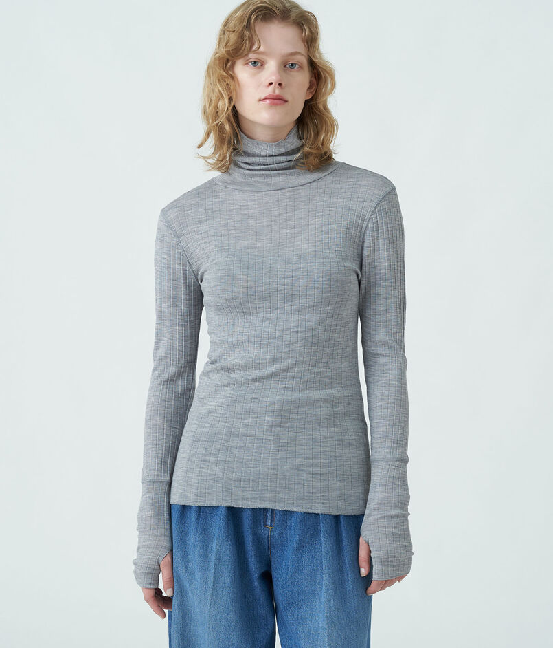 良質なウール糸をプリーツリブ組織に編み立てたジャージー素材のプルオーバー。