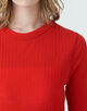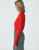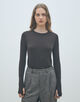 ほど良くボディに沿うすっきりとしたシルエットにコンパクトなネックラインでカジュアルな中にも女性らしさを感じる一着です。