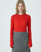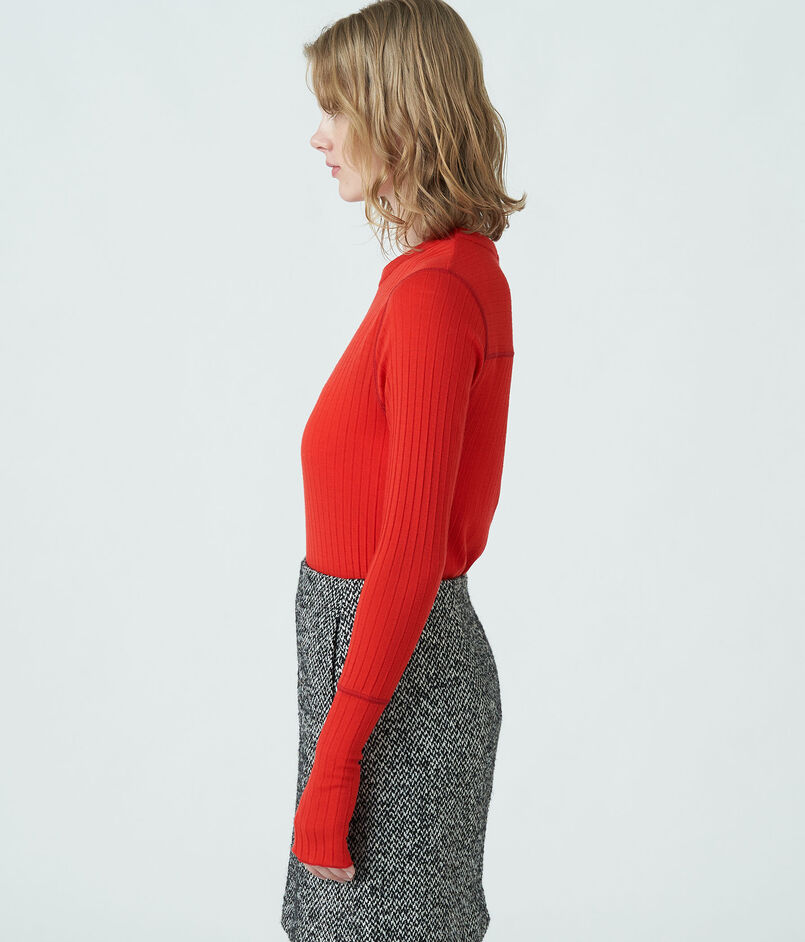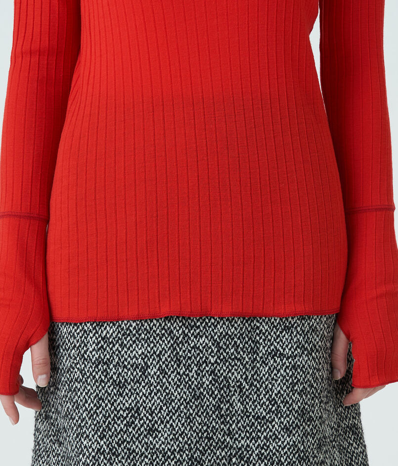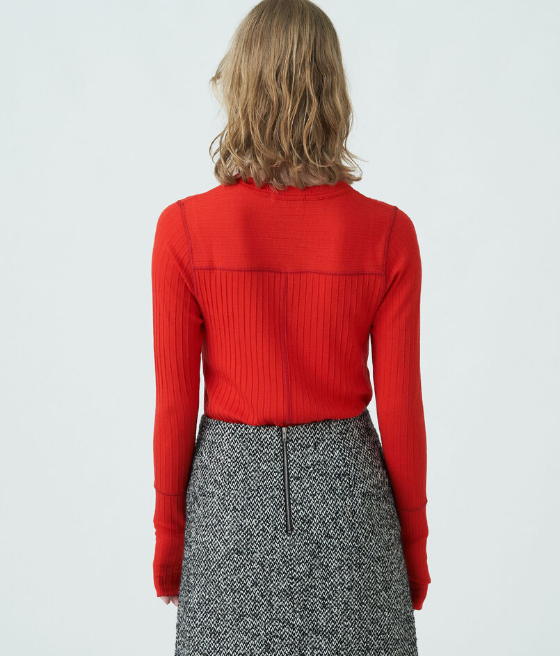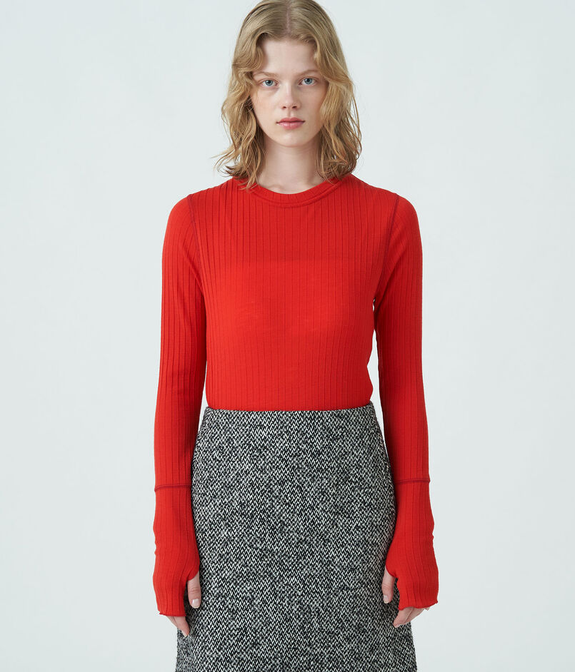 良質なウール糸をプリーツリブ組織に編み立てたジャージー素材のプルオーバー。