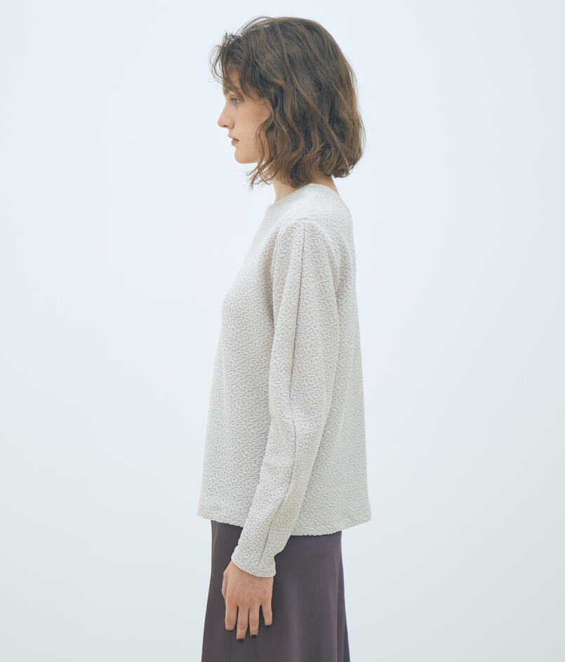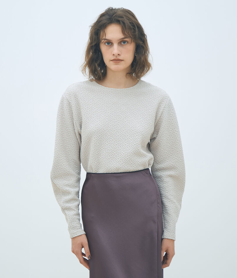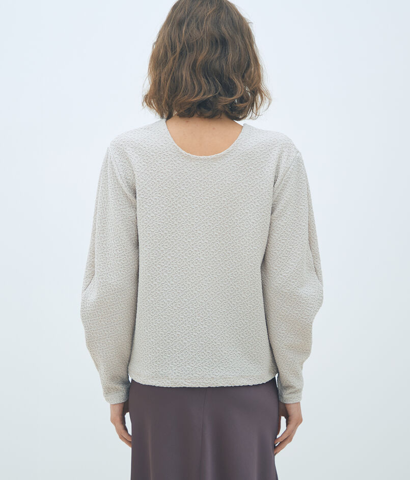 カーブをつけて膨らみを持たせたスリーブがデザインポイントの一枚でさまになるプルオーバー。