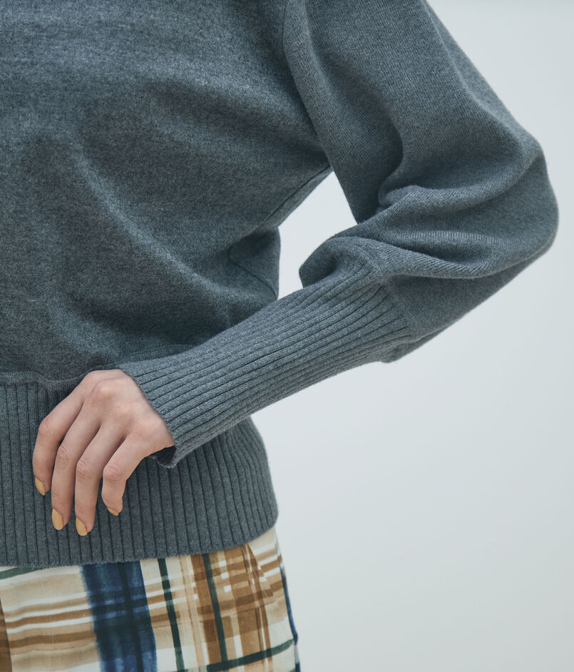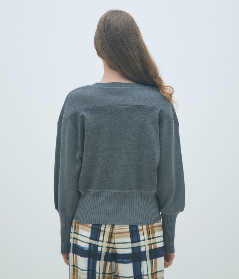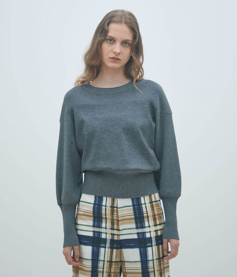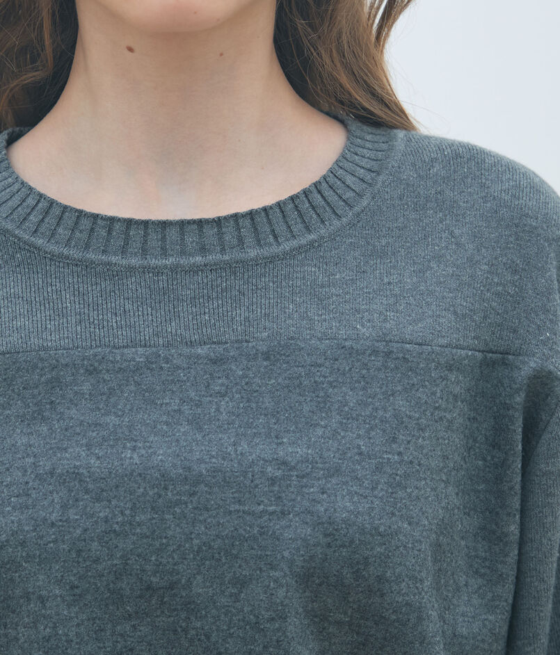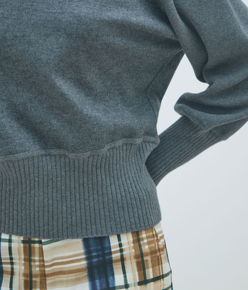 60番手の糸で織り上げた、しなやかさとなめらかな肌触りが特徴のニット素材と圧縮ジャージー素材をコンビ使いしたプルオーバー。