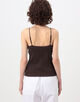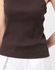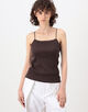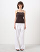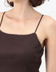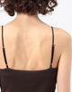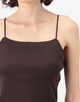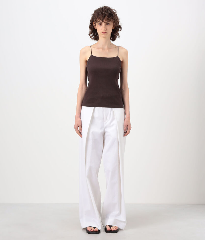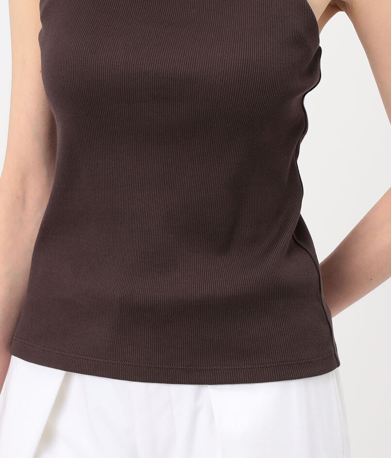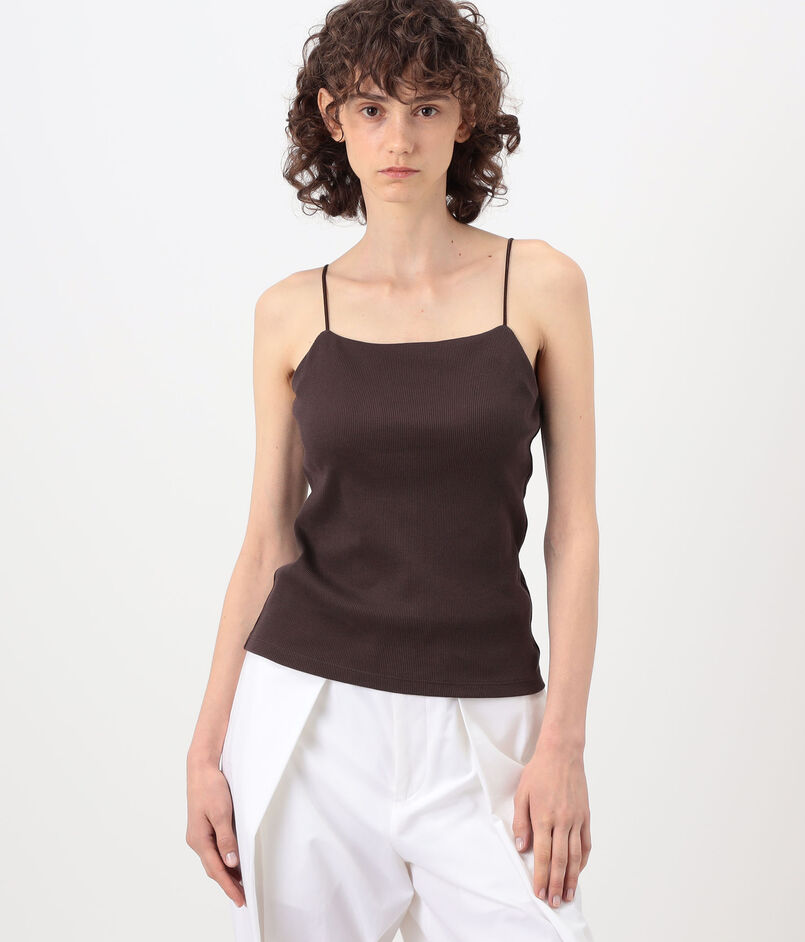 ボディにフィットするシルエットに直線的なネックライン、華奢なストラップでヘルシーな印象の一枚。