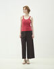 キャミソールは細めの肩紐や前後ともに深めのネックラインでヘルシーな着こなしが決まる一着。