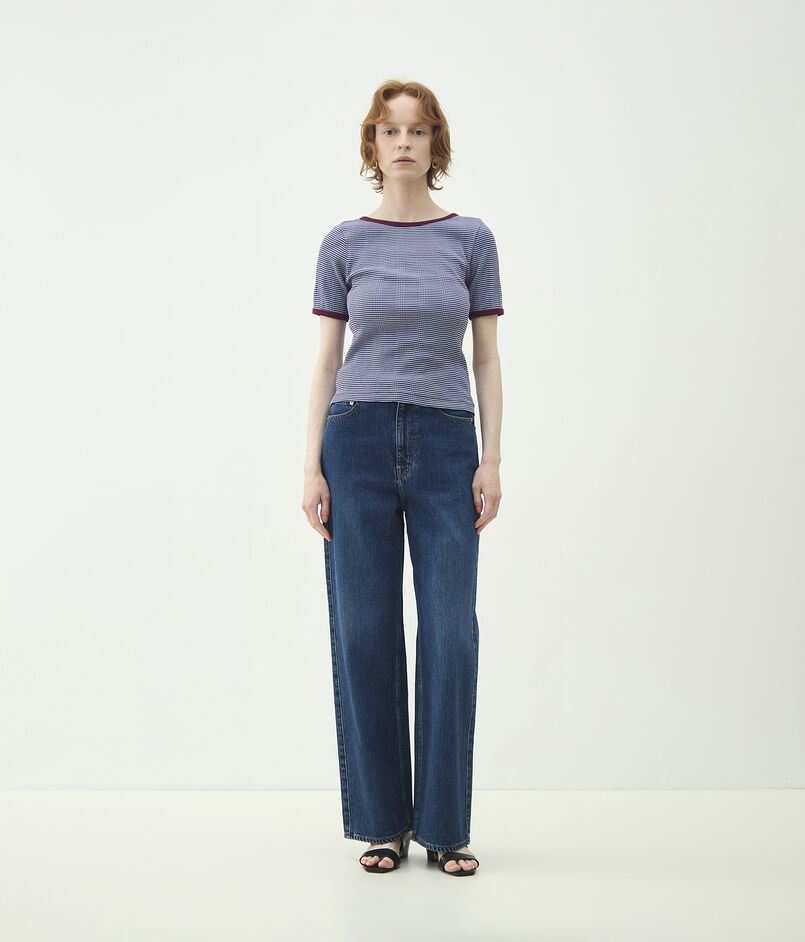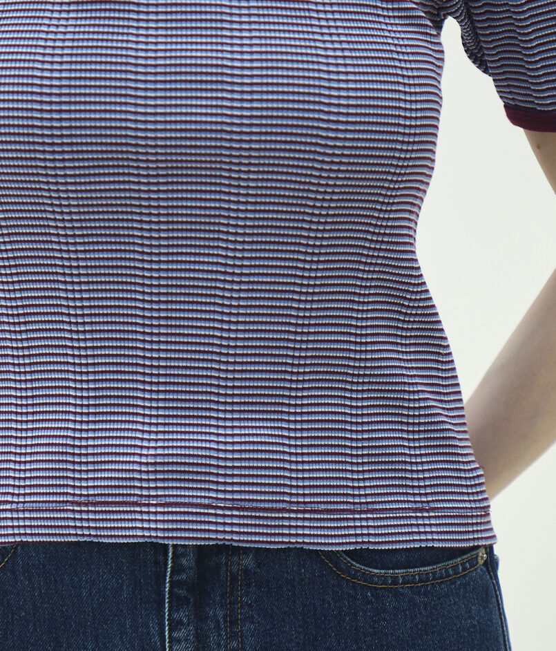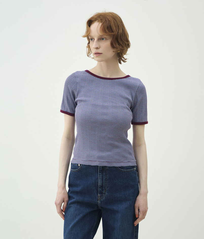 〈MACPHEE〉オリジナルのマルチボーダー柄に織り上げたジャージー素材シリーズ。