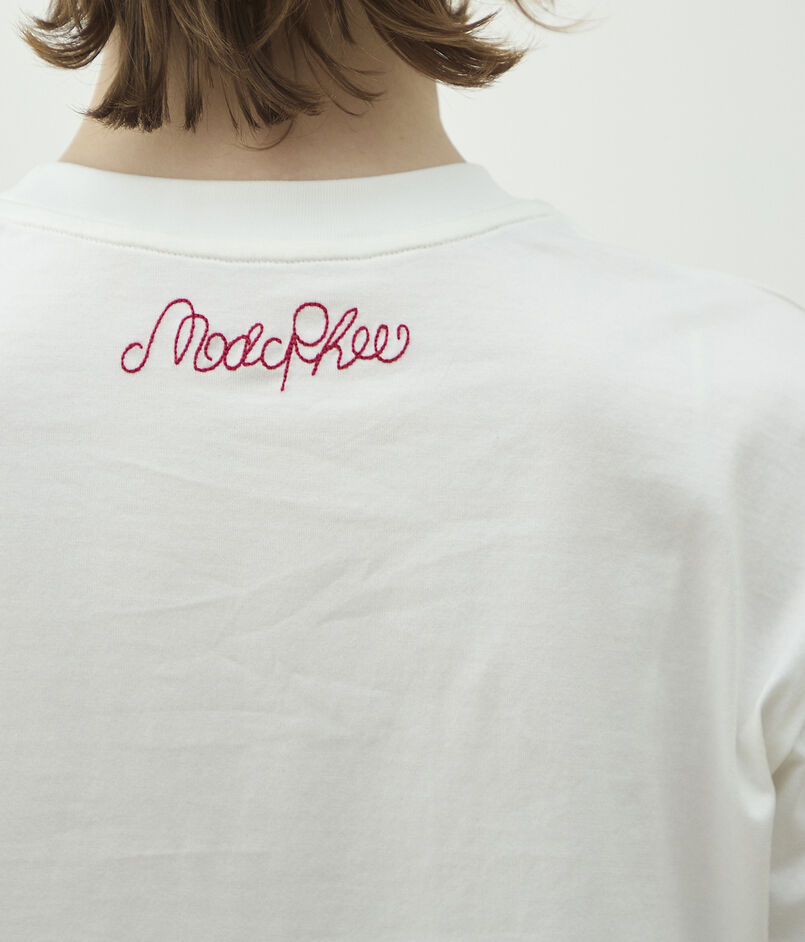 フロントには〈MACPHEE〉オリジナルのボタニカルモチーフを刺繍で施し、プリントとは一味違う奥行きのある表情を生み、バックにあしらわれたロゴ刺繍も心くすぐるアクセントになっています。