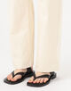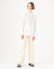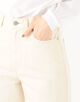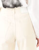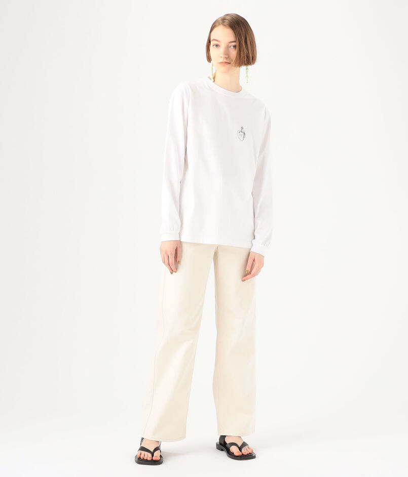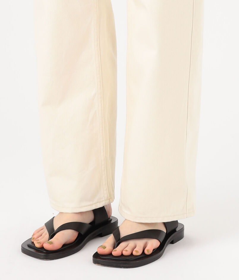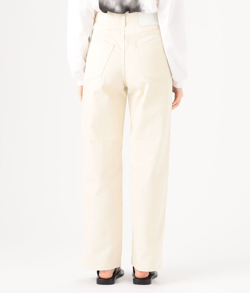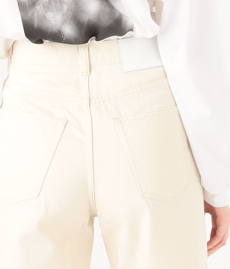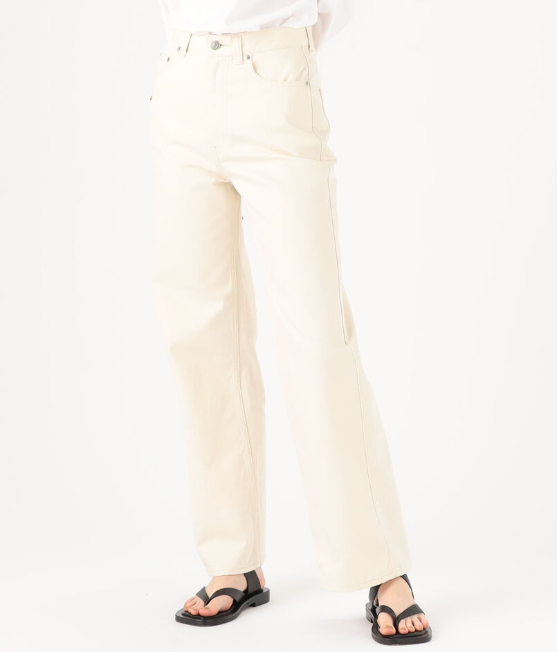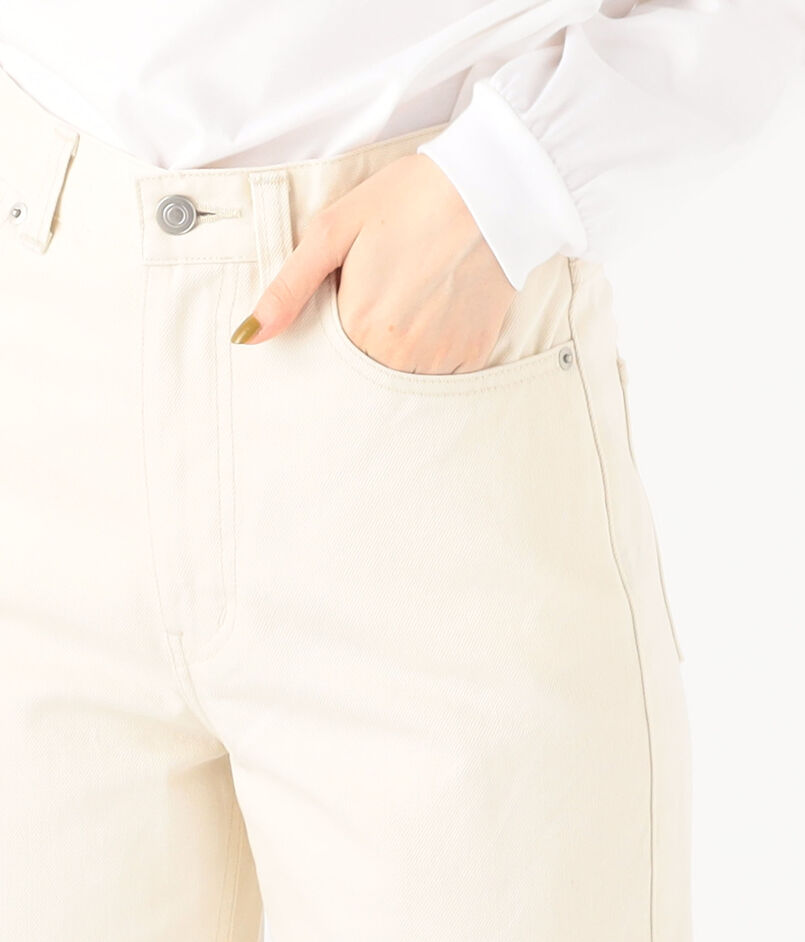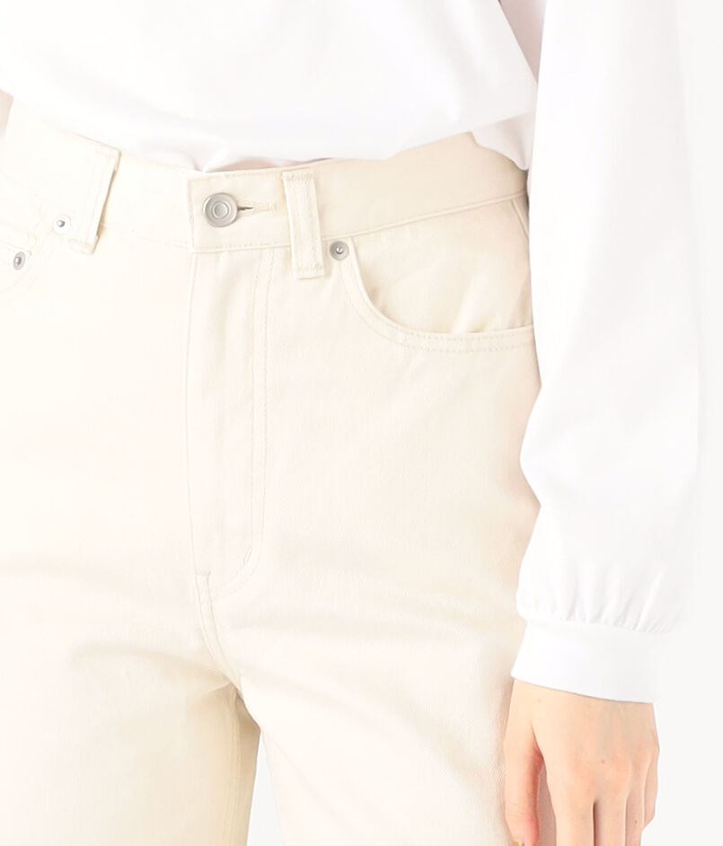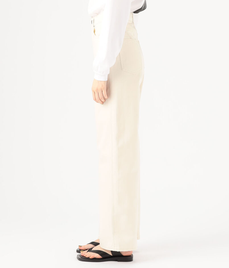 絶妙な太さのセミワイドシルエットをハイウエスト位置できゅっと引き締めることですっきりとしたバランスに。