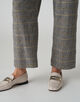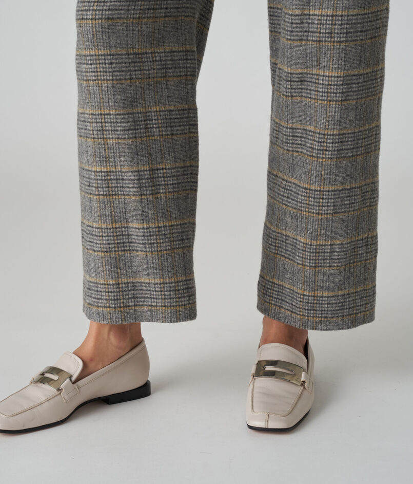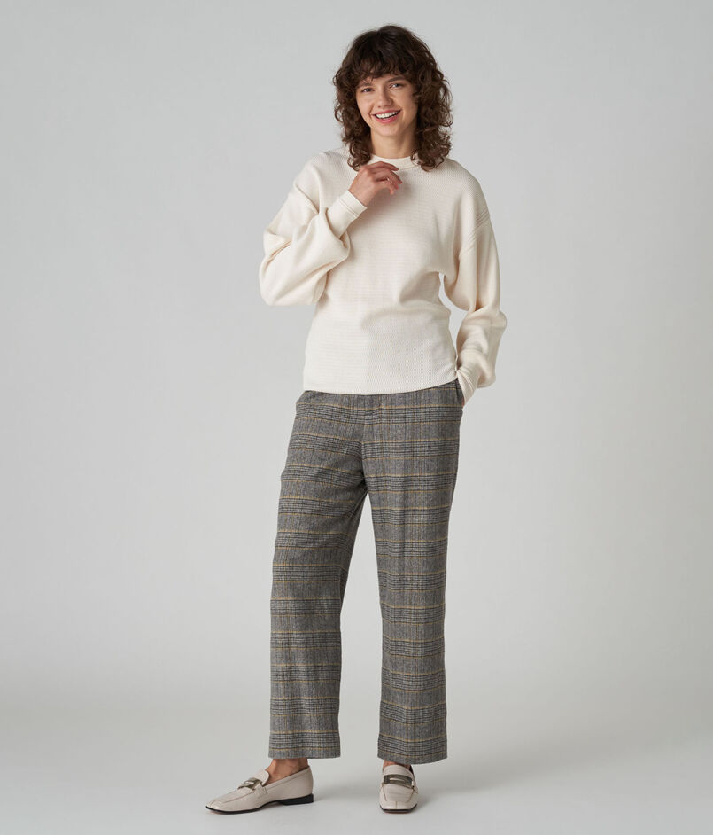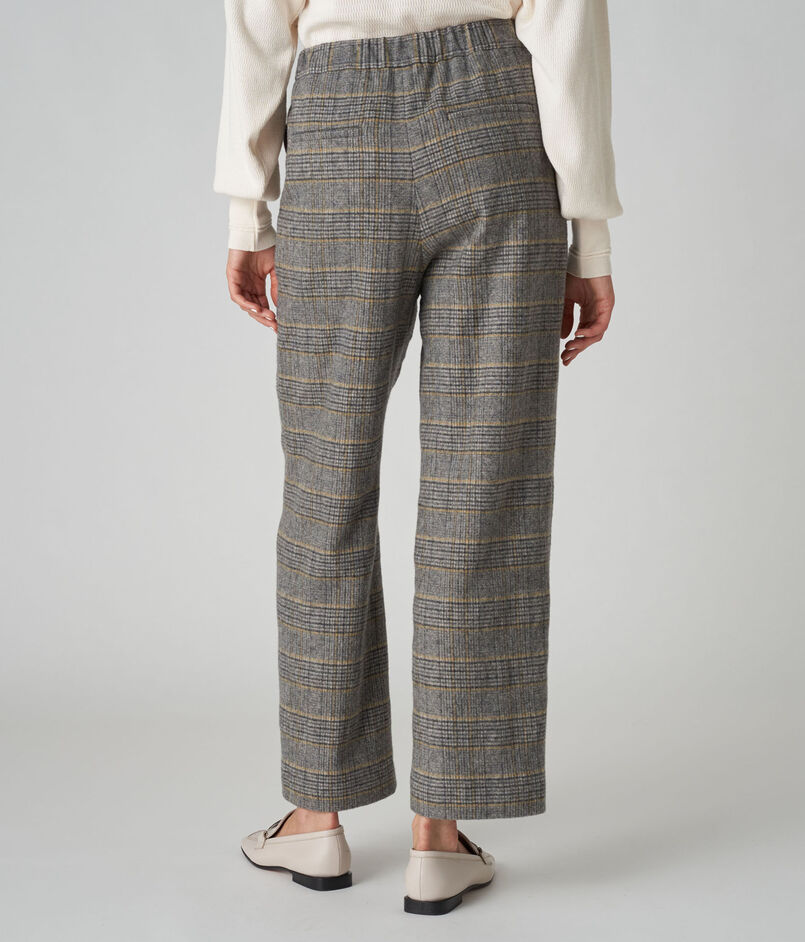 再生素材を使用したエコロジカルなインポートのフランネル素材を使用したパンツ。