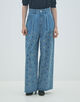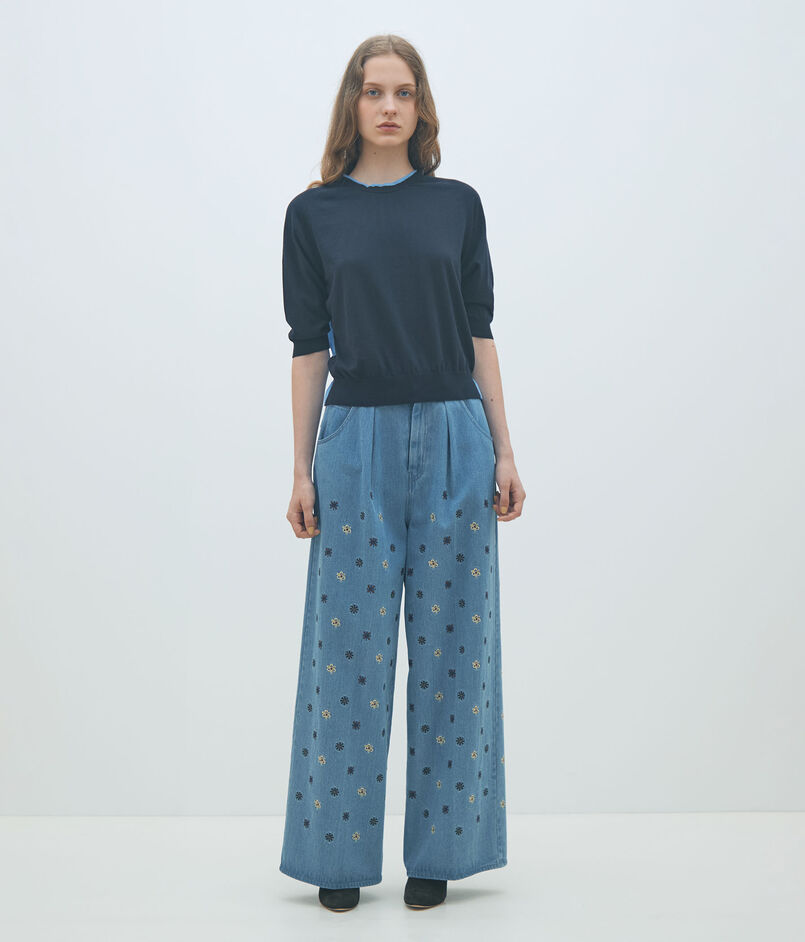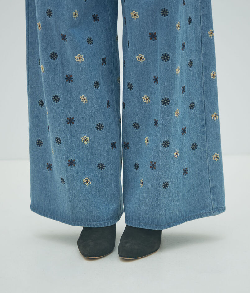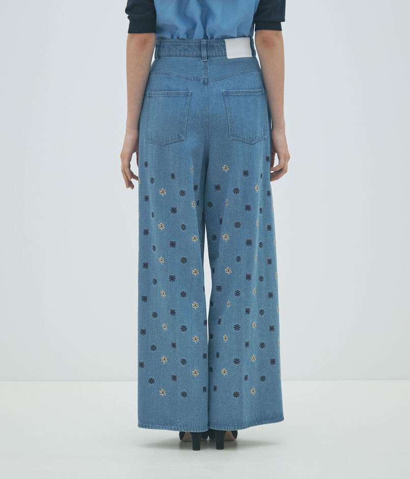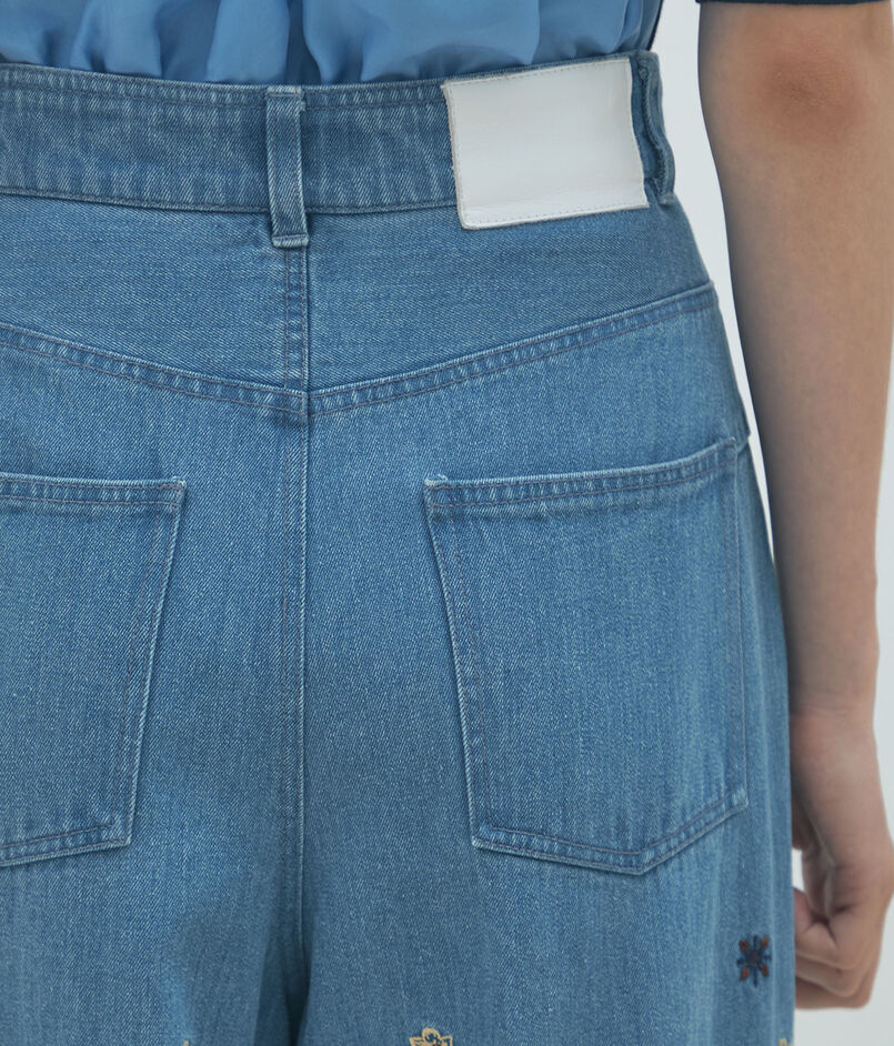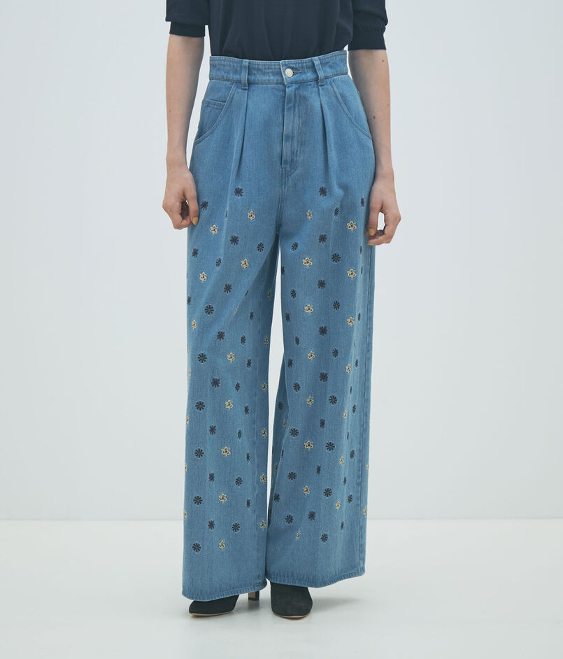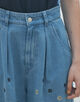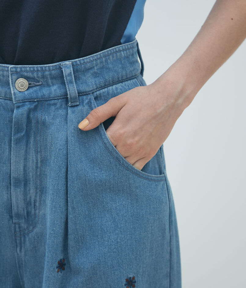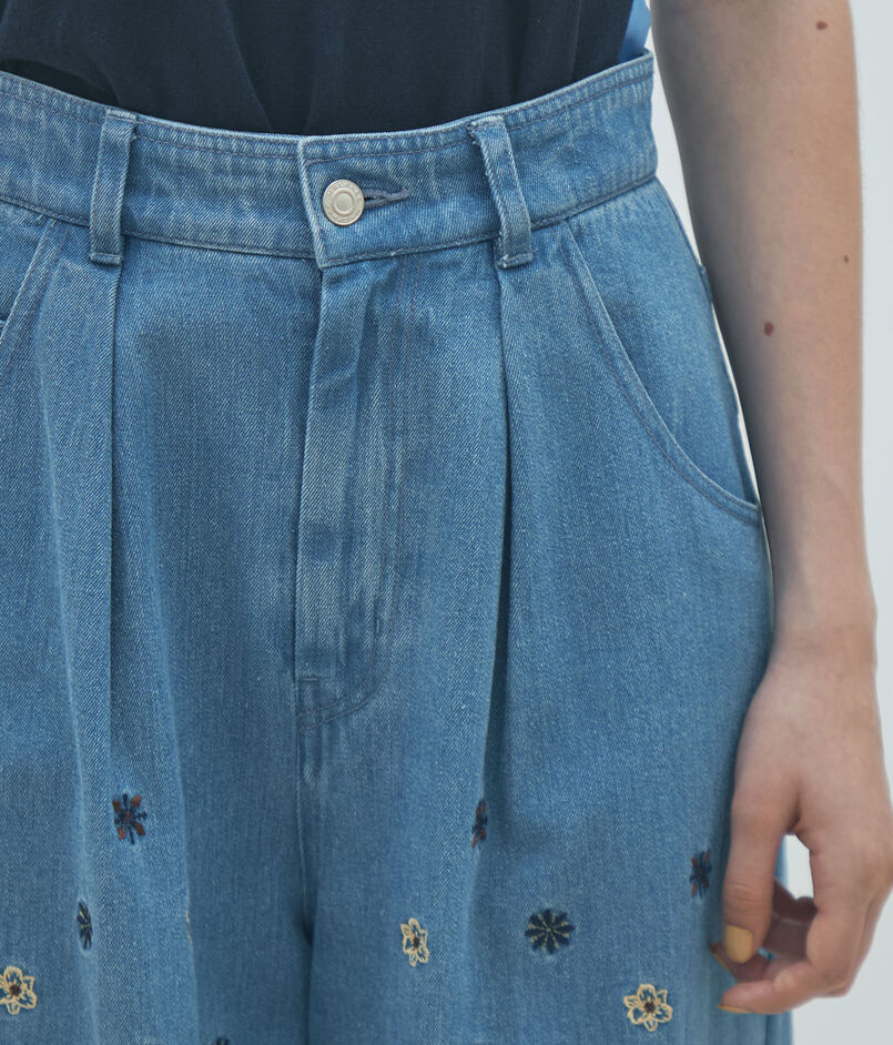 ボタニカルエンブロイダリーデニム タックワイドパンツ