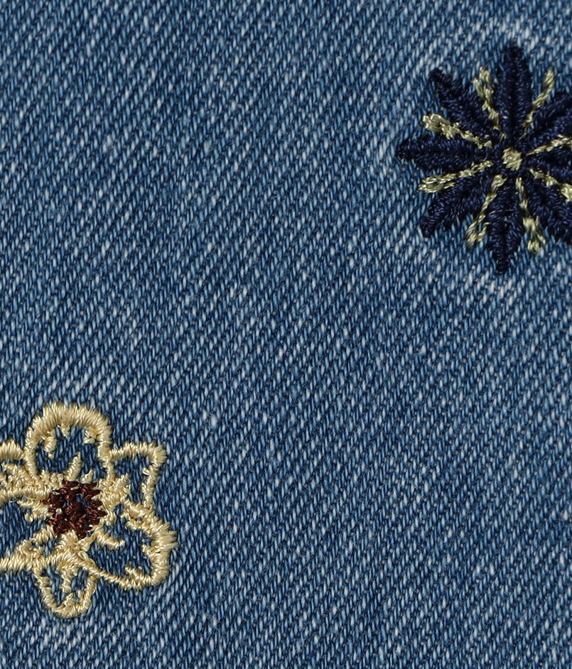 強撚糸を使用し織り上げたシャリ感を感じていただけるデニム素材に、手書きのボタニカル柄を刺繍したシリーズ。