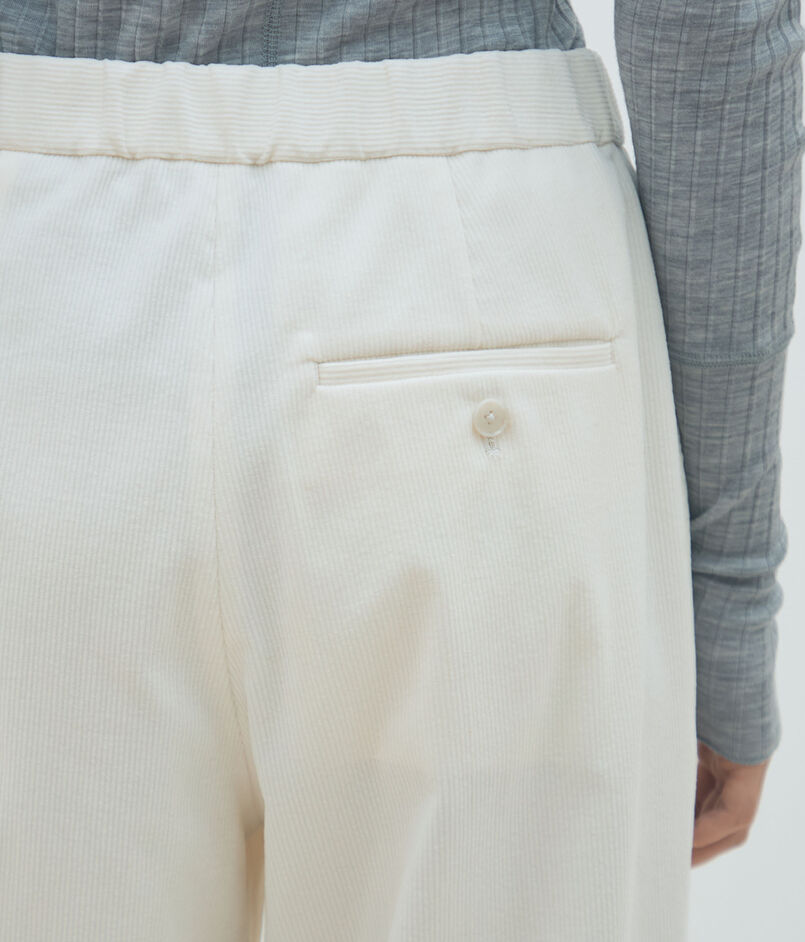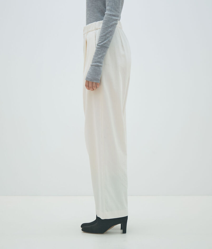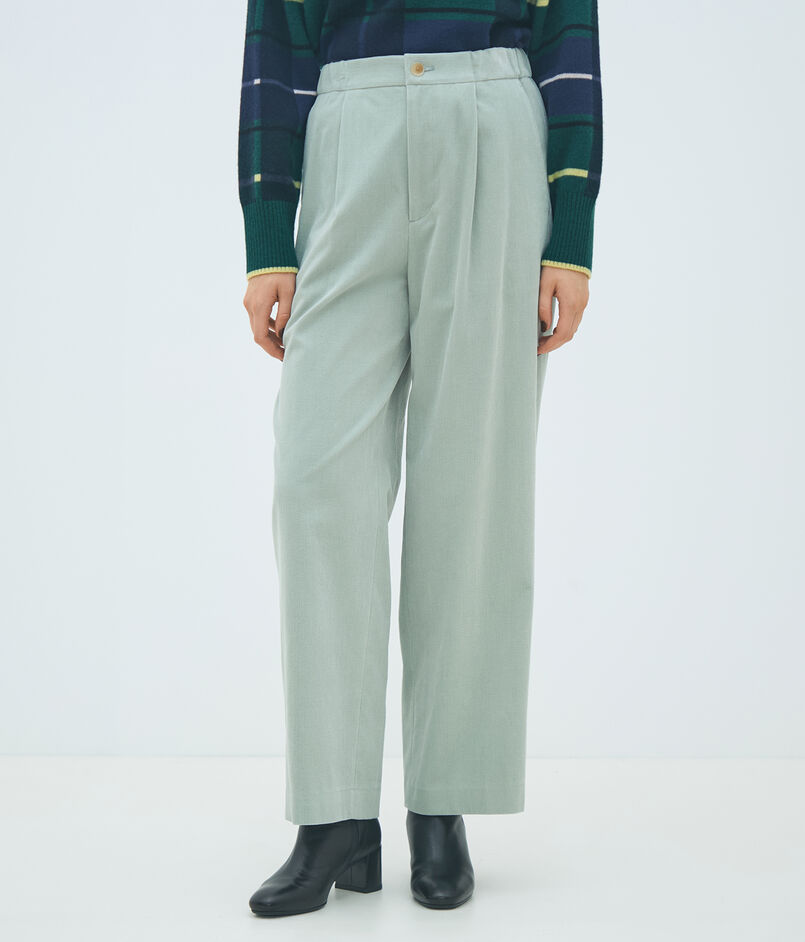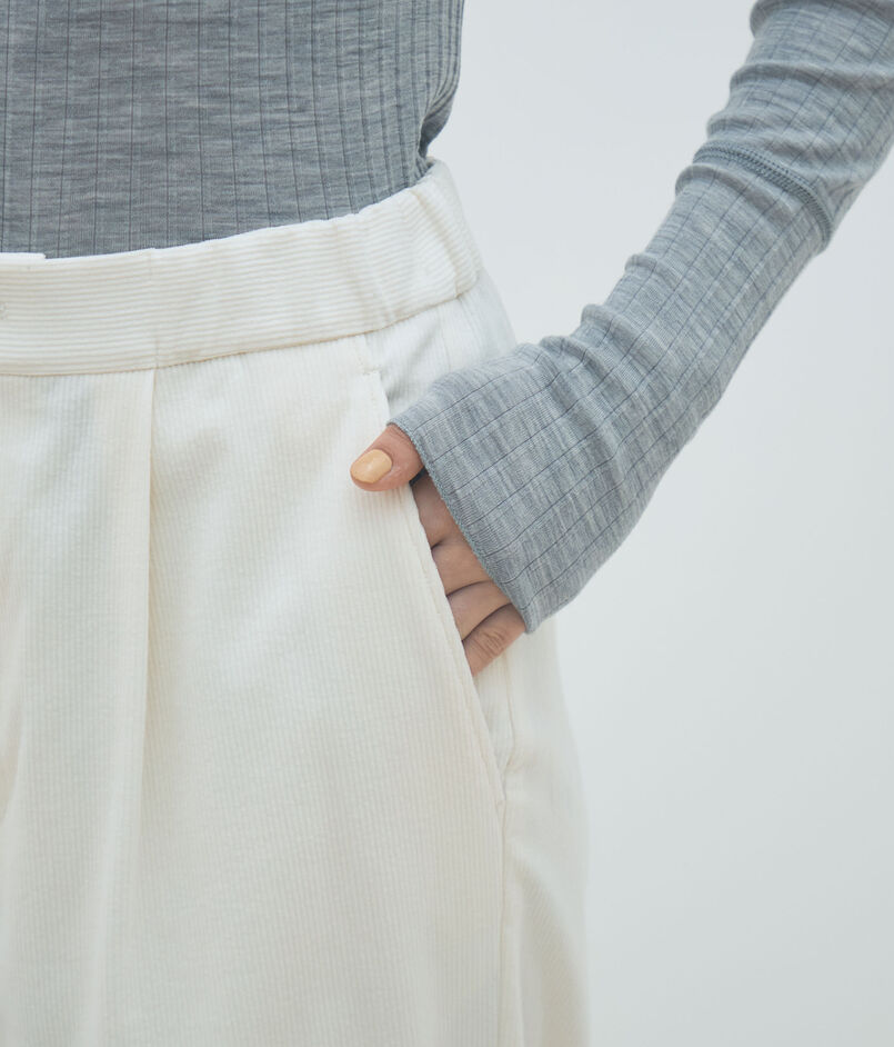 通常のコーデュロイよりも細番手の糸で織り上げた、ソフトでほど良いハリが残った素材を使用したパンツ。