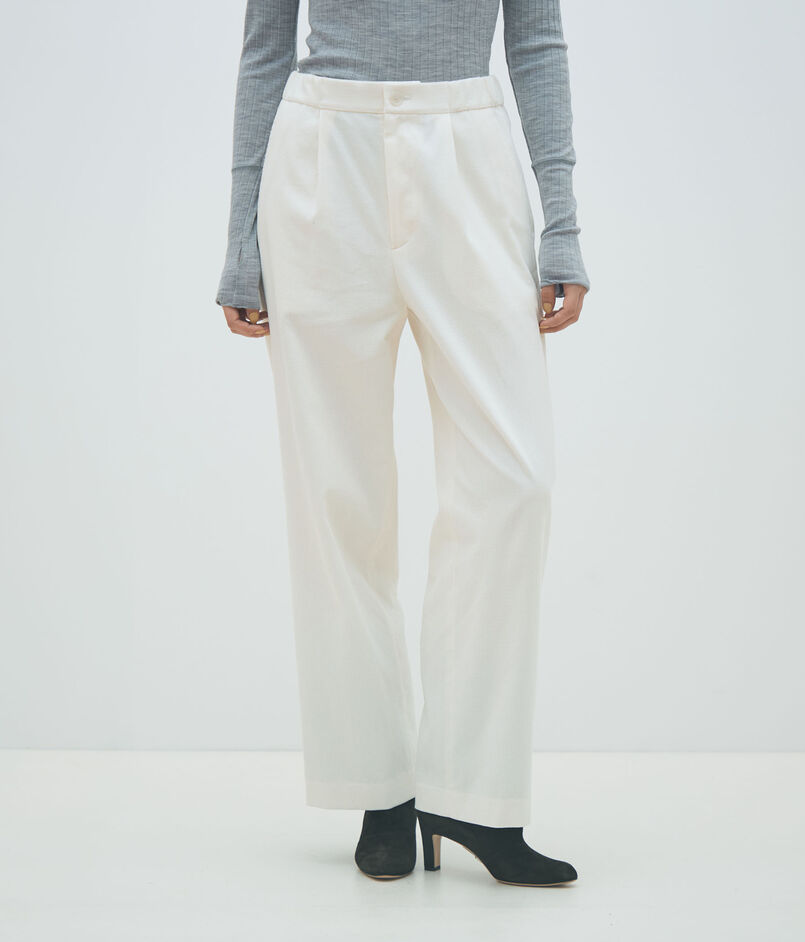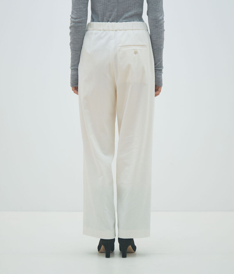 バックのゴムギャザーを極力抑えることでイージーな穿き心地ながらラフになり過ぎず、きれいめにも着こなしていただけます。