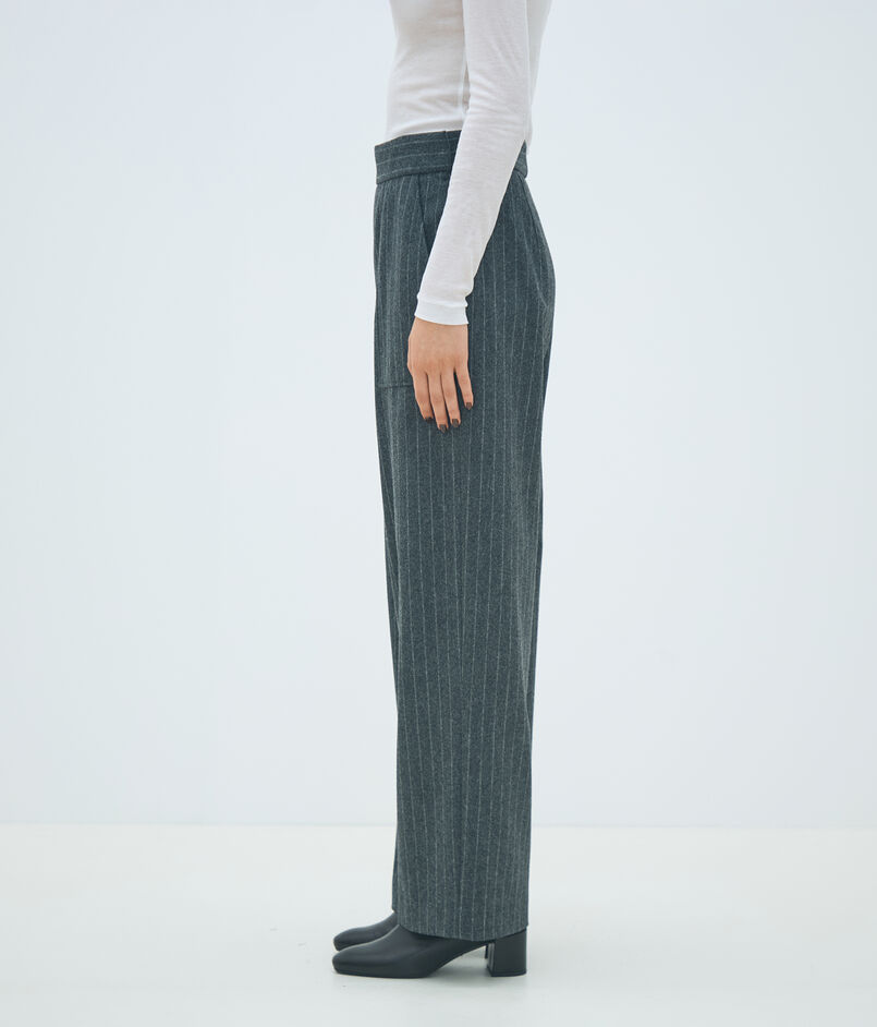 裾にかけてすとんと落ちるセミワイドシルエットでほど良くリラックス感がありつつも、ハイウエスト位置でぎゅっと引き締めることですっきりとした女性らしいバランスでお召しいただける一着。