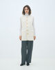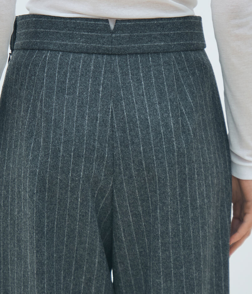 裾にかけてすとんと落ちるセミワイドシルエットでほど良くリラックス感がありつつも、ハイウエスト位置でぎゅっと引き締めることですっきりとした女性らしいバランスでお召しいただける一着。