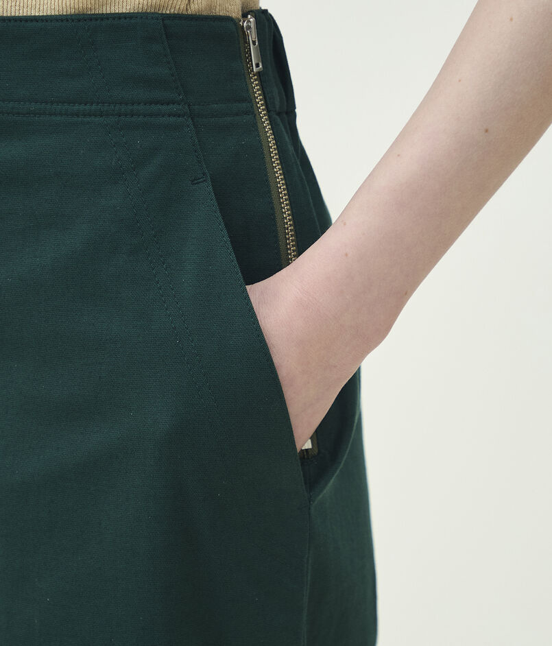 レッグラインを拾わない絶妙なストレートシルエットで抜け感がありながらも、腰まわりをすっきりとさせることで大人の雰囲気に仕上げた一着。
