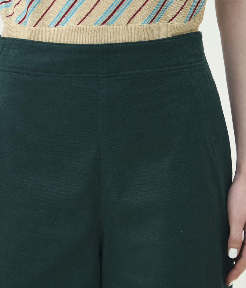 リネン混ならではのさらりとした清涼感のあるタッチが魅力のストレッチ素材を使用したパンツ。