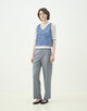 アウトラインはすっきりとしたストレートシルエットながら、サイドにアジャストベルトを付けたり後ろポケットに実用的なファスナーを配すことでスポーティーミックスな雰囲気に仕上げた一着。