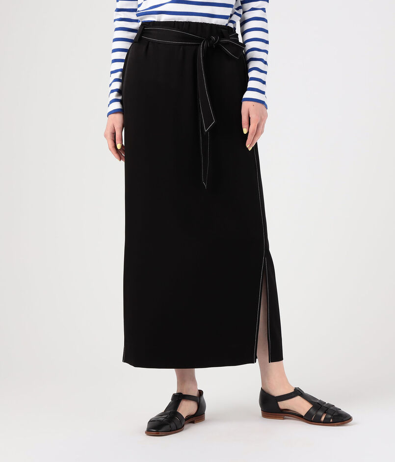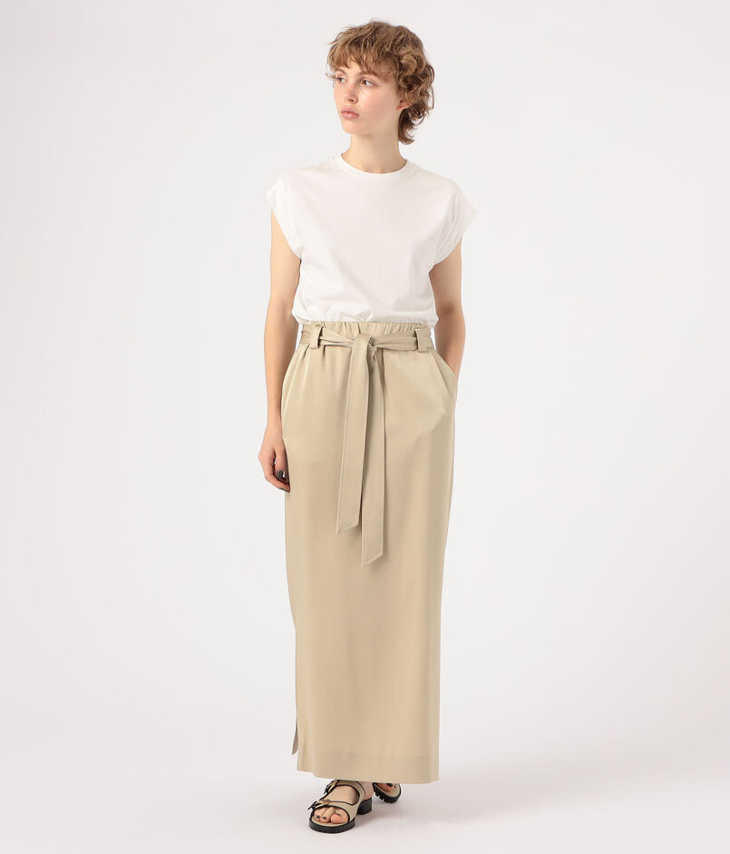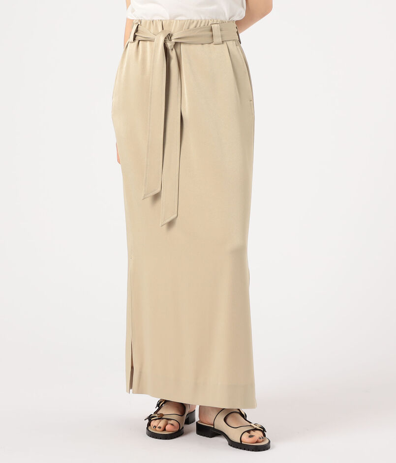 トリアセテートポリエステルサテン ベルテッドマキシスカート