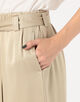 トップスをインして付属のベルトでギュッとウエストを締め、端を長めに垂らす着こなすのもおすすめ。