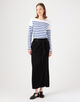 なめらかなタッチと控えめな光沢感が特徴のトリアセテートポリエステルのサテン素材を使用したスカート。