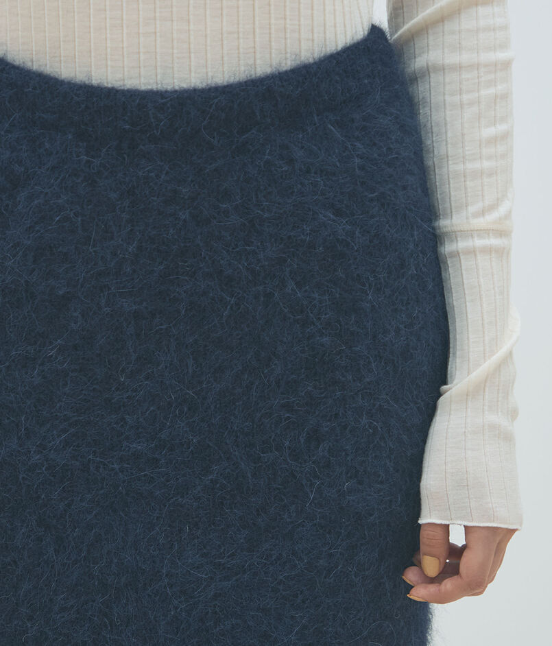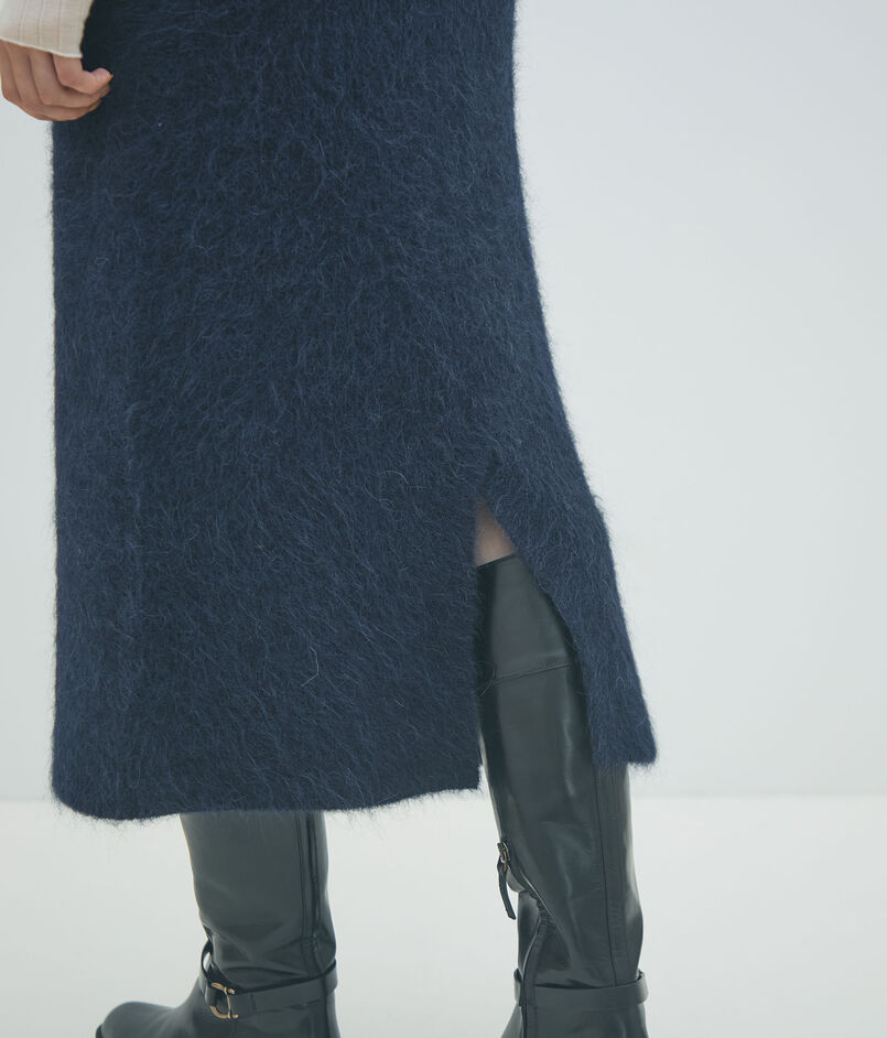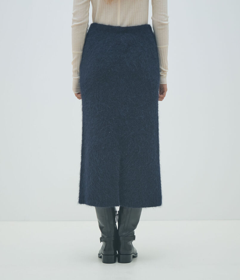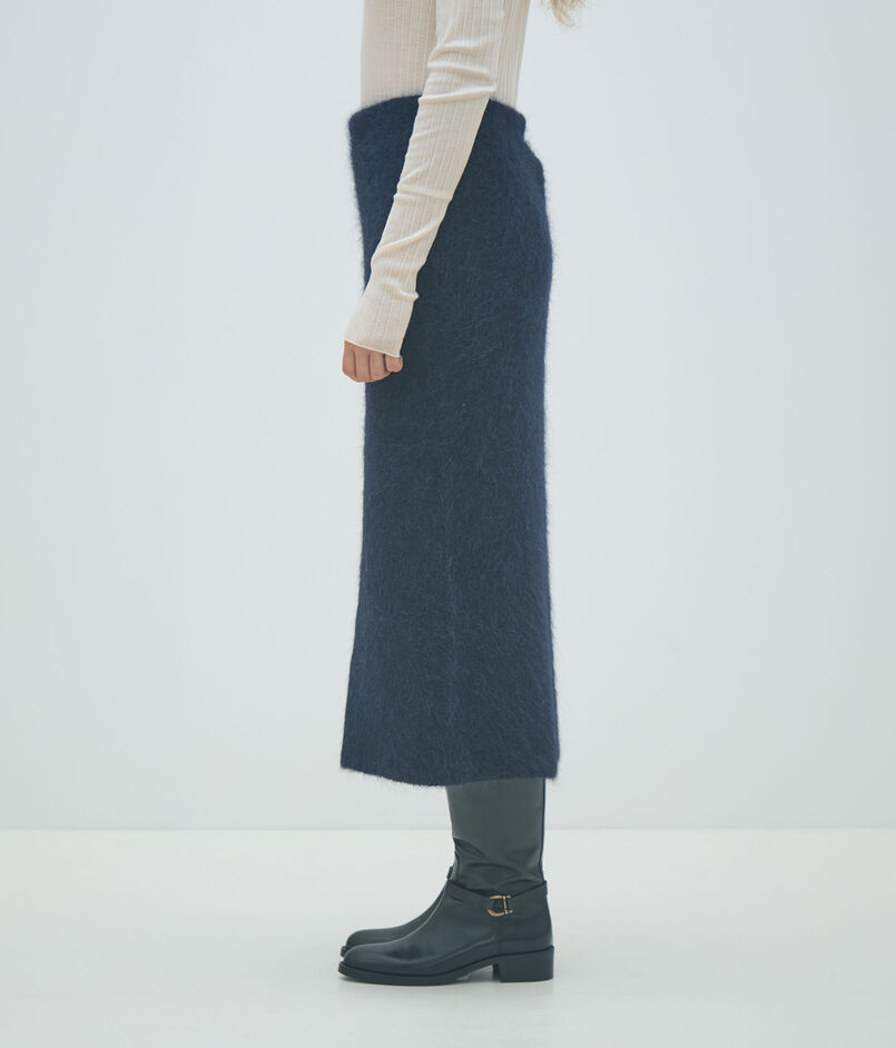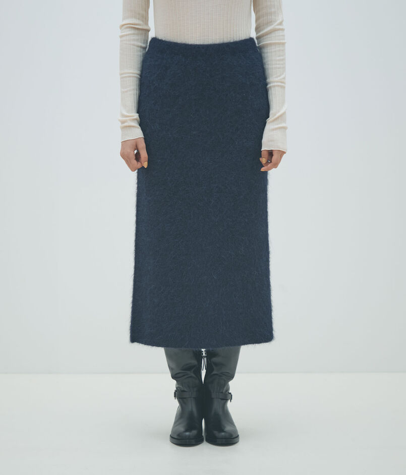 スカートはすっきりとしつつもボディラインを拾いすぎないシンプルでミニマルなデザインの一着。